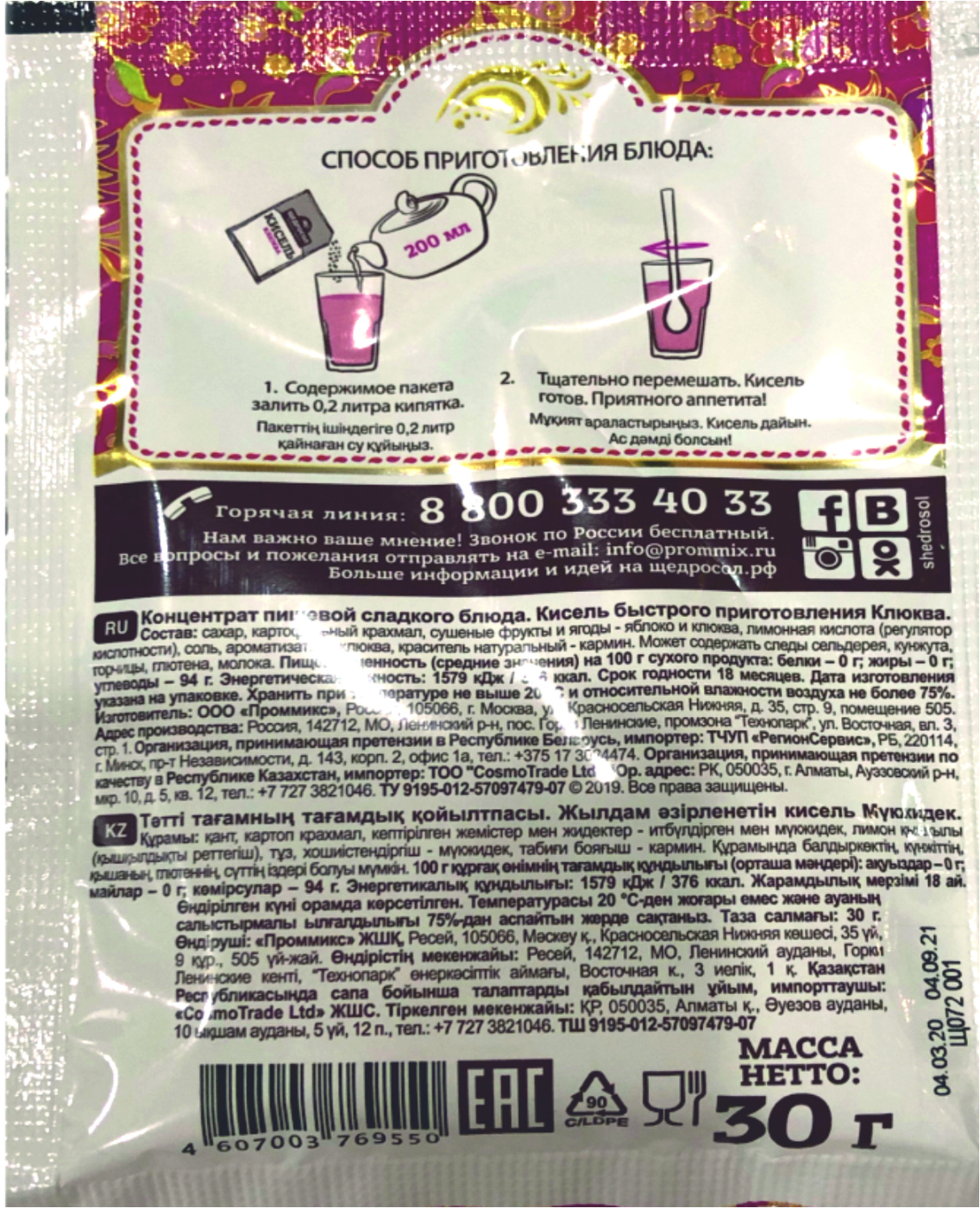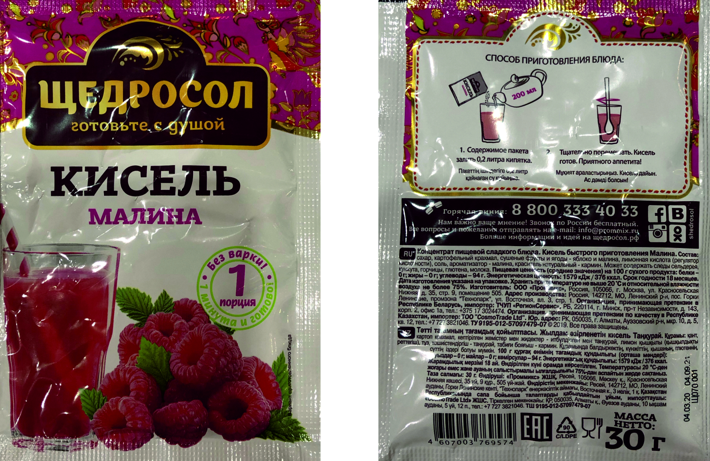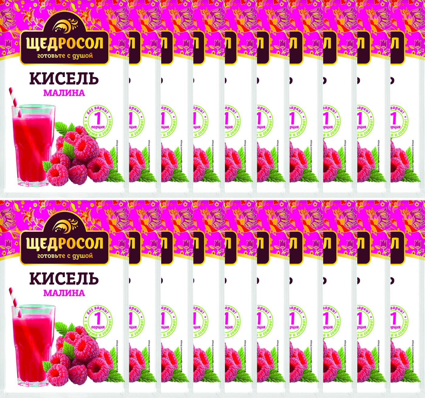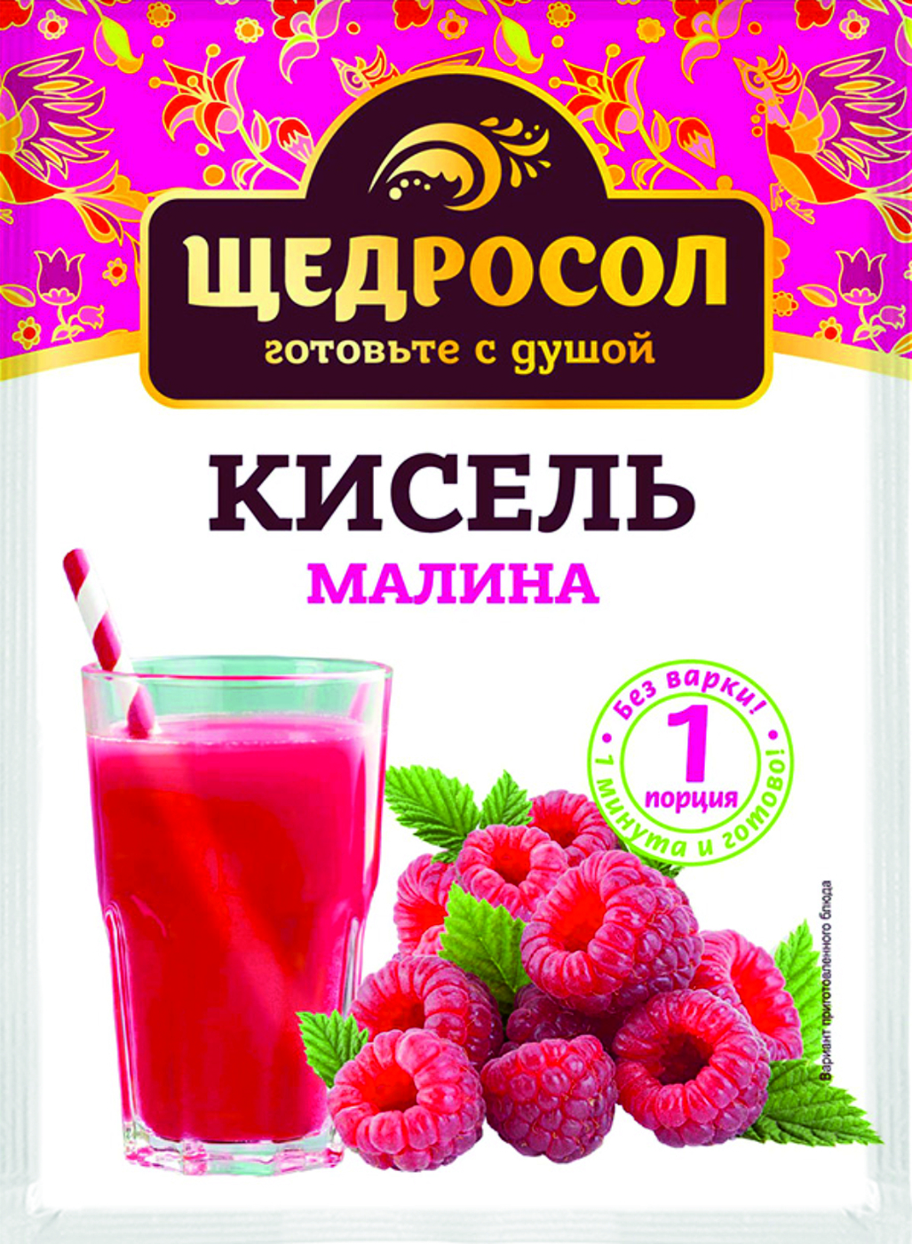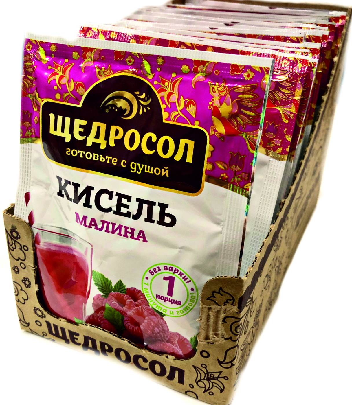 "Кисель ""Малина"" из натурального сока Щедросол пакет 30 гр. (20 шт)"