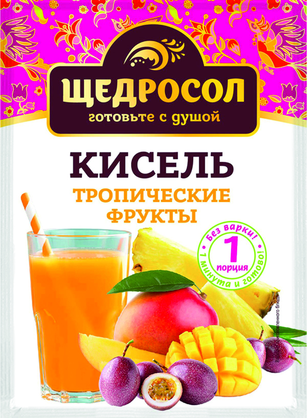 "Кисель ""Тропические фрукты"" из натурального сока Щедросол пакет 30 гр. (30 шт)"