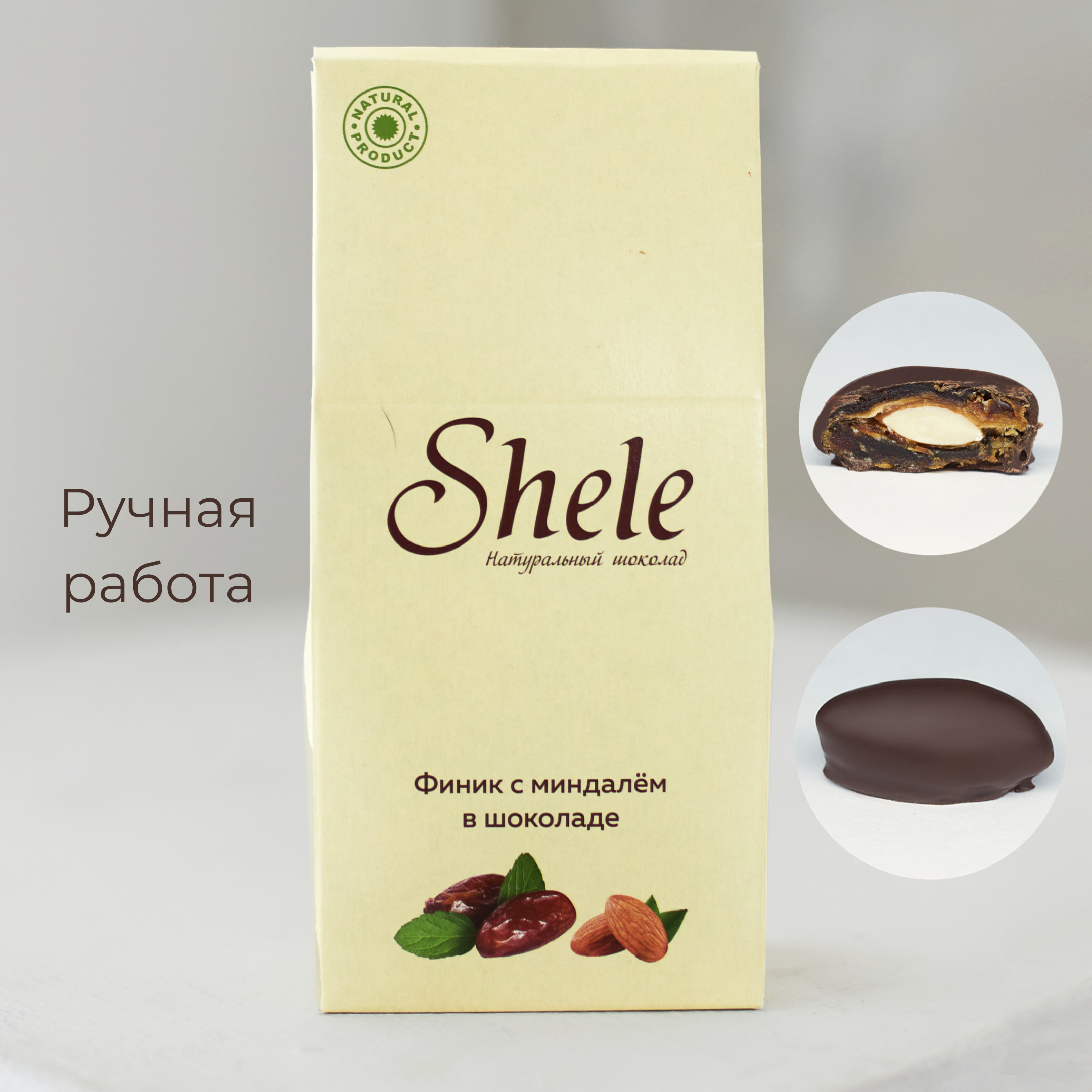 ФИНИКИ С МИНДАЛЕМ В ШОКОЛАДЕ, ручная работа, шоколадные конфеты, Шеле-Шоколад, 150гр.
