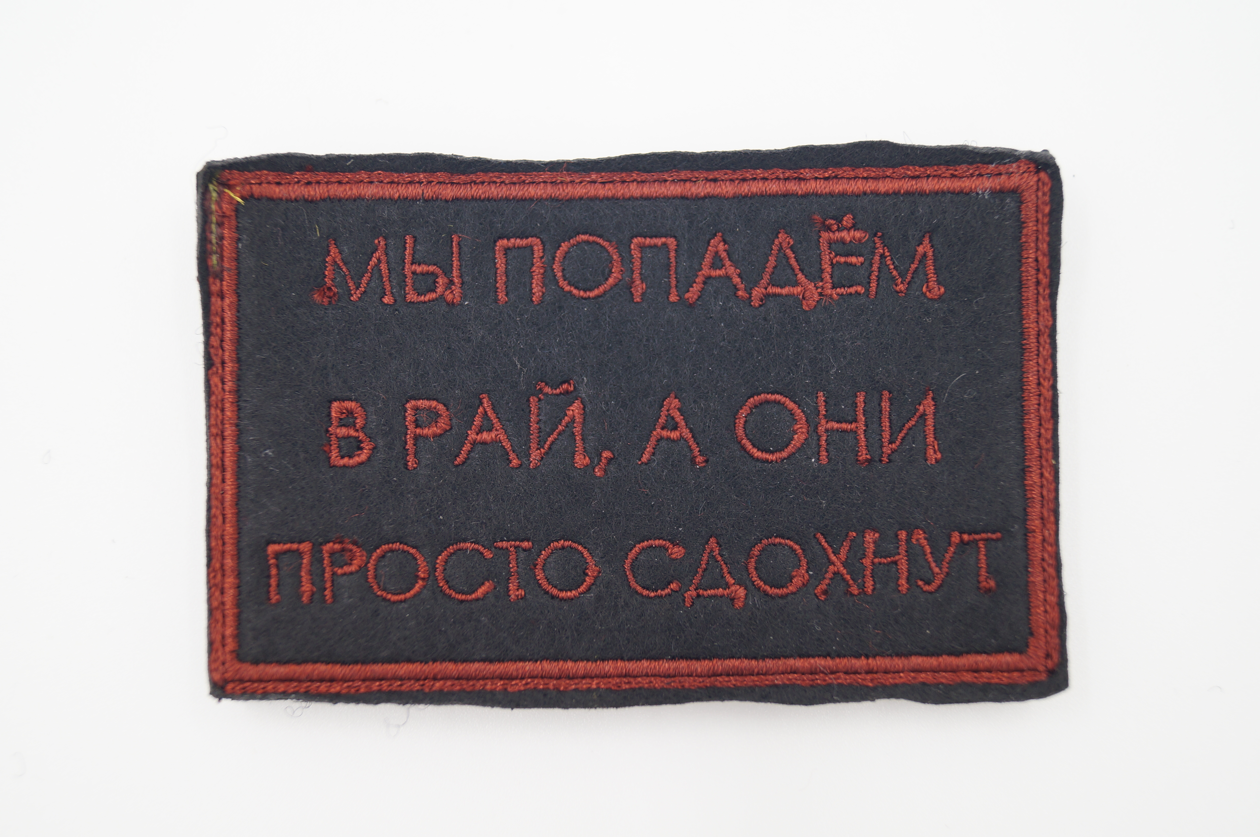 Нашивка шеврон (патч) Мы попадём в рай, а они просто сдохнут , 7х5 с липучкой в комплекте.