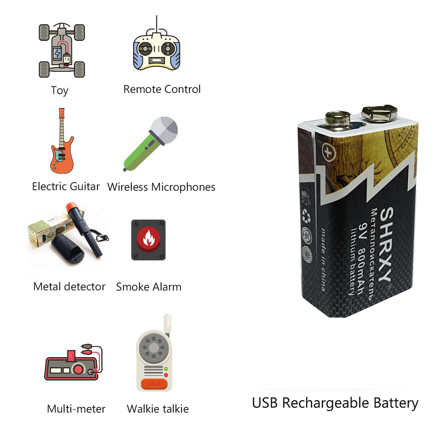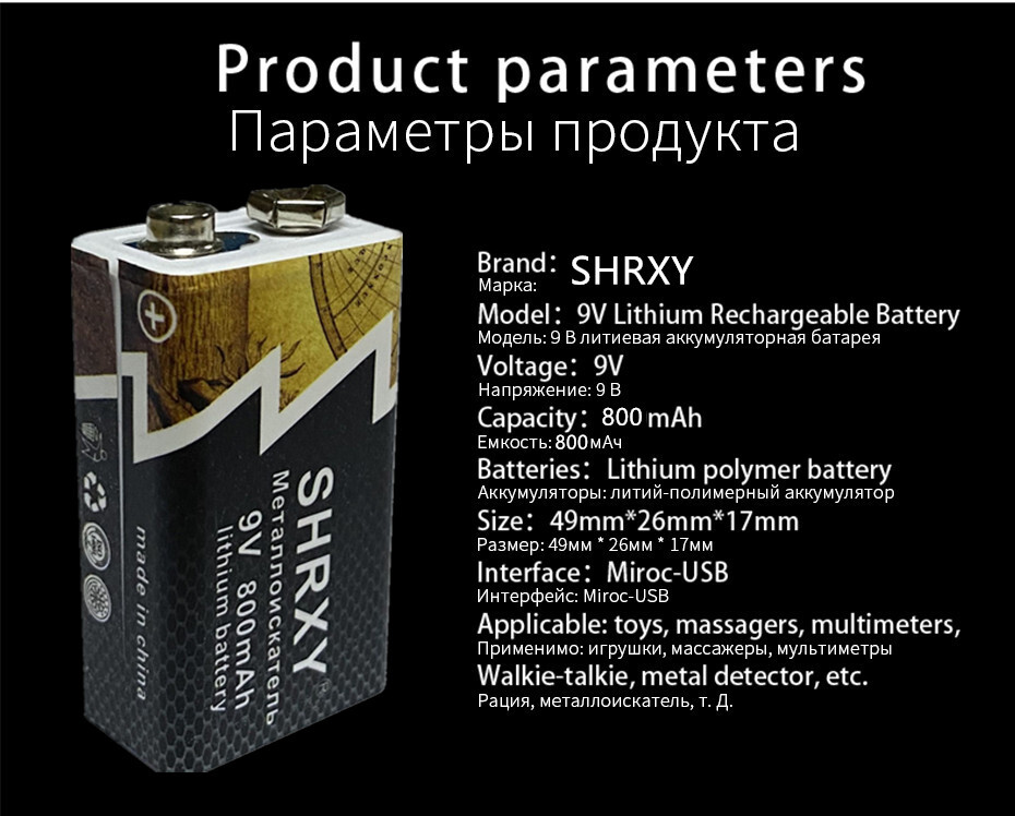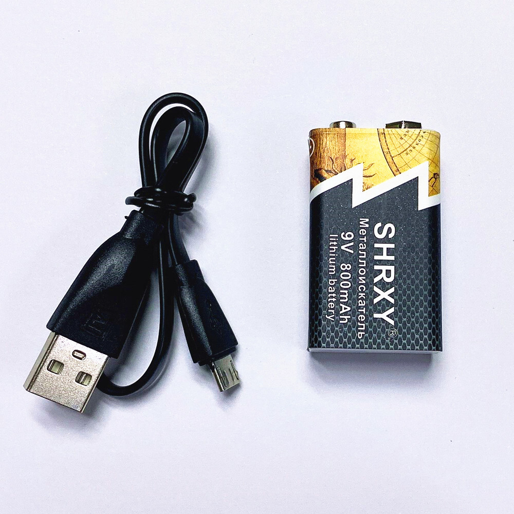 Литий-ионная аккумуляторная батарея для металлоискателя 800 мАч Micro USB 9V 2 шт.