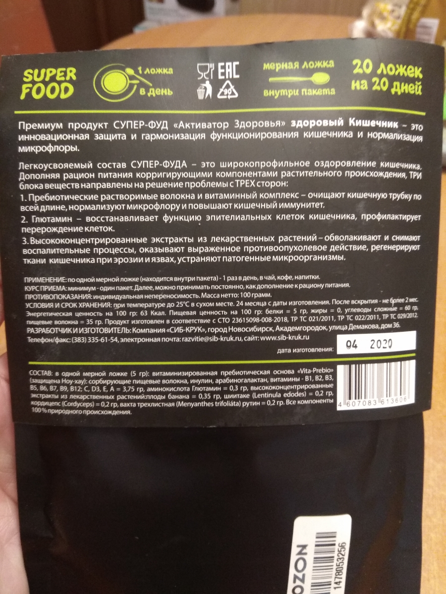 Растительный препарат для оздоровления ЖКТ "SUPERFOOD Здоровый кишечник", 100 г. Сиб-КруК