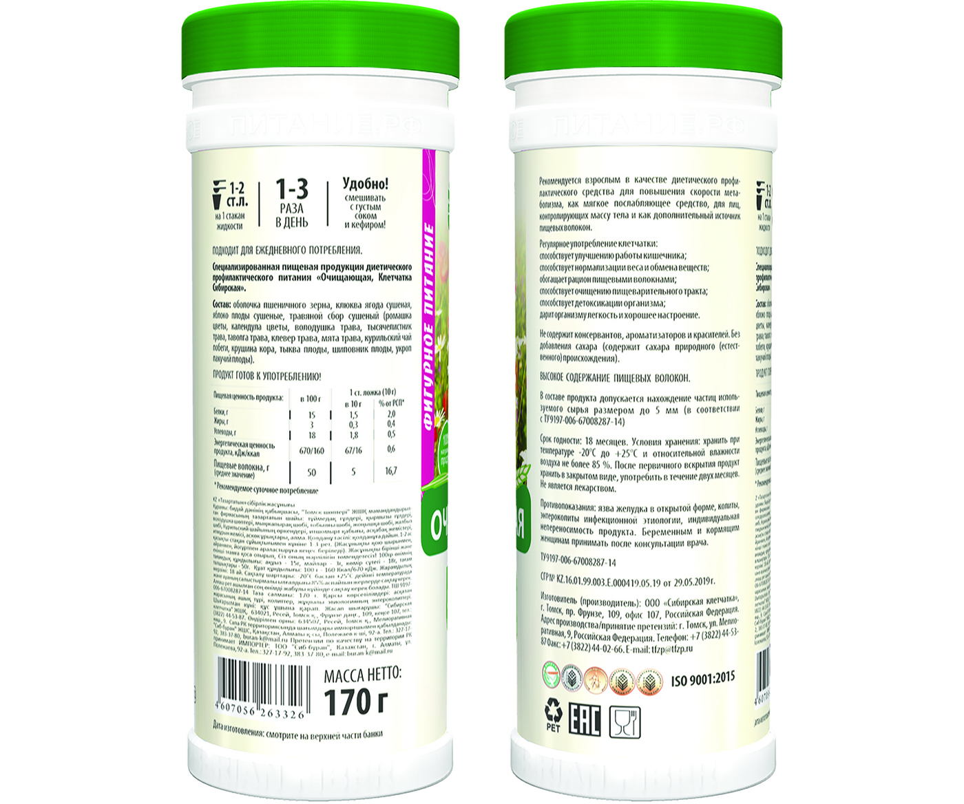 Сибирская клетчатка Очищающая, (4 шт х 170 г)