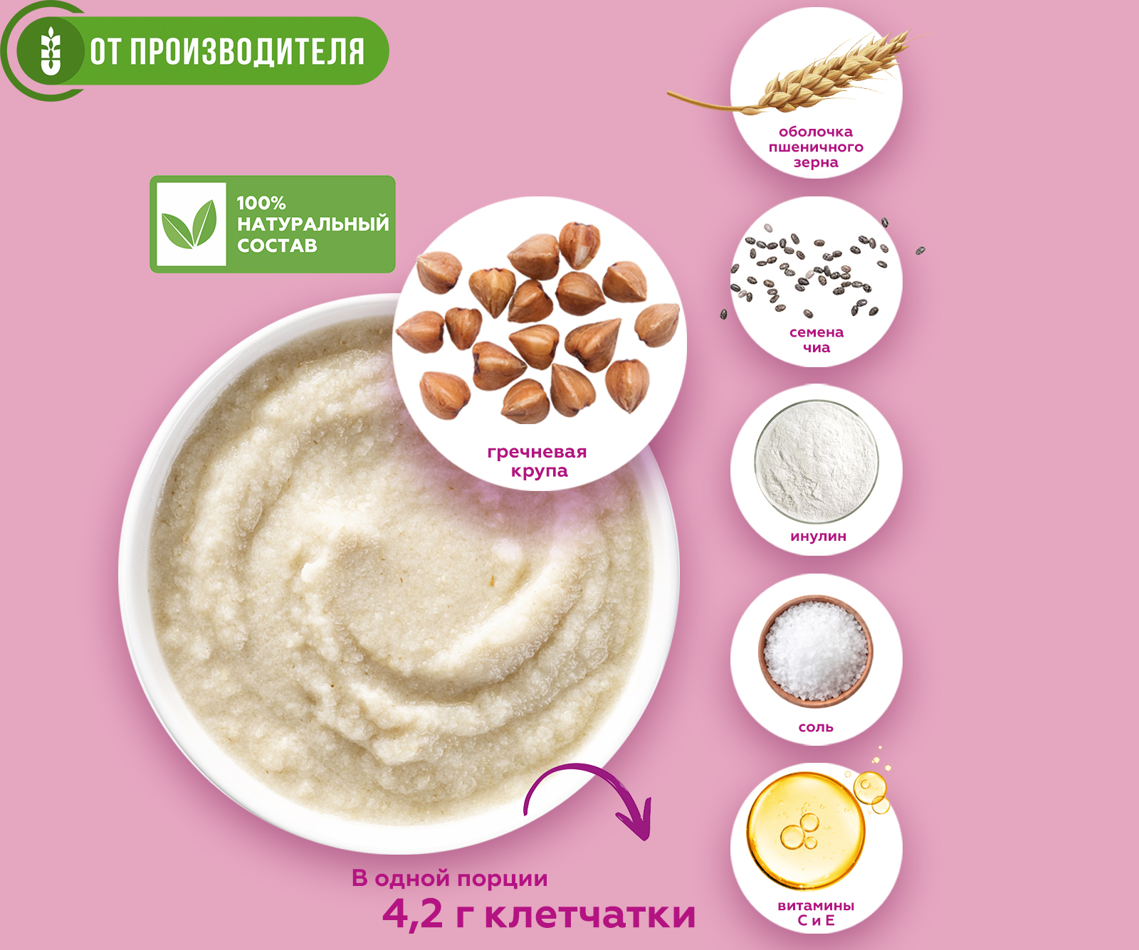 КРЕМ - КАША гречневая с яблоком безмолочная / быстрого приготовления / Сибирская клетчатка 400 г