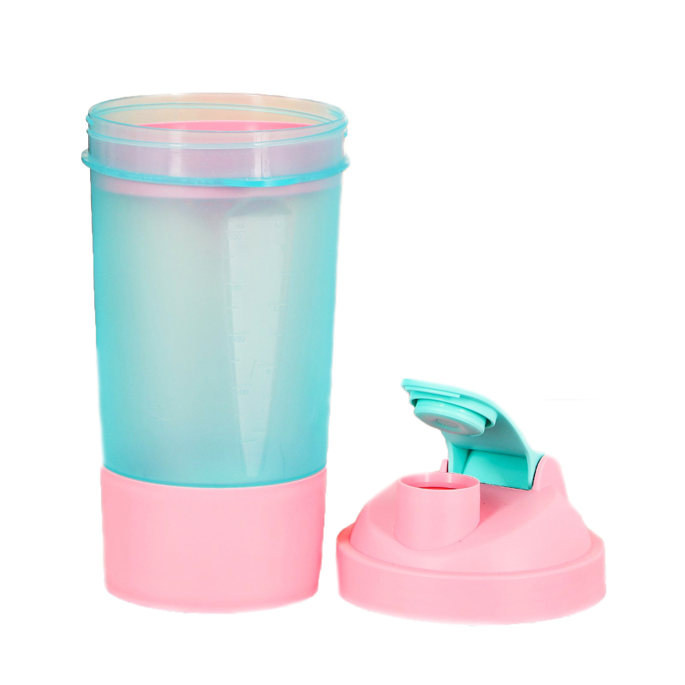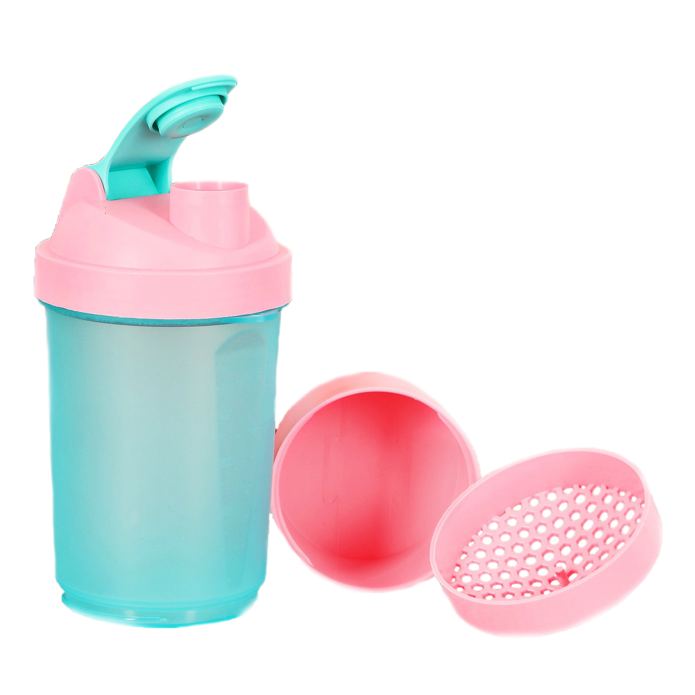 Шейкер спортивный, с чашей под протеин, 500 мл Sibstore, 0,5л., голубой, розовый