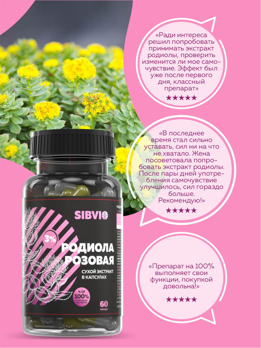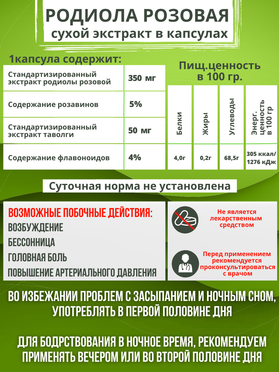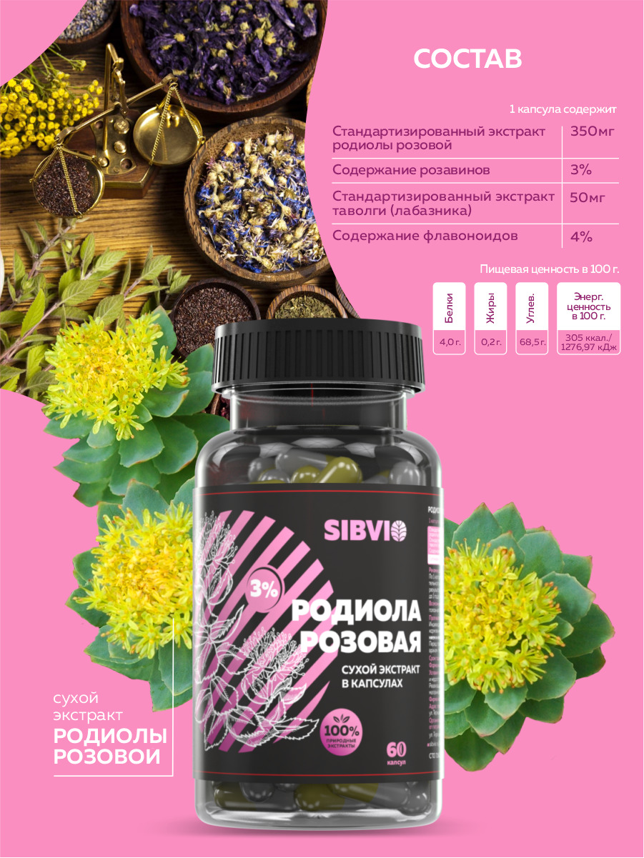 Родиола розовая (Золотой корень) 3%, экстракт корня, 60 капсул. Средство от стресса. Противовирусный препарат.