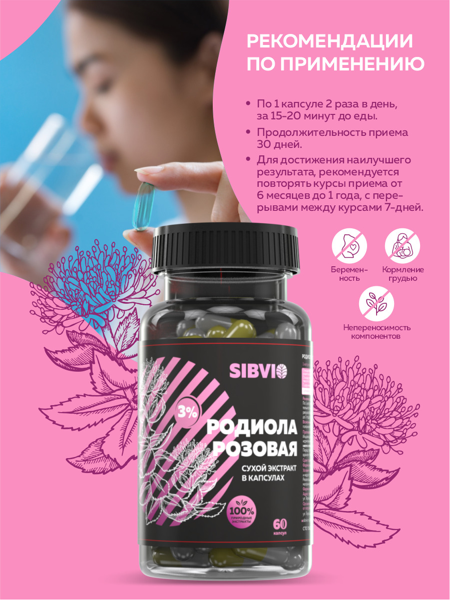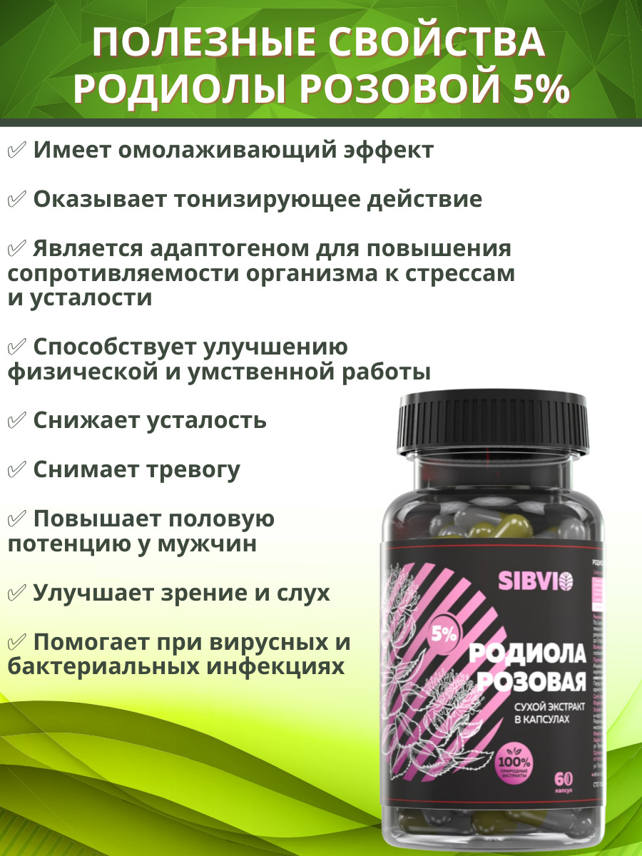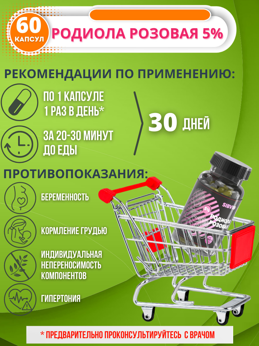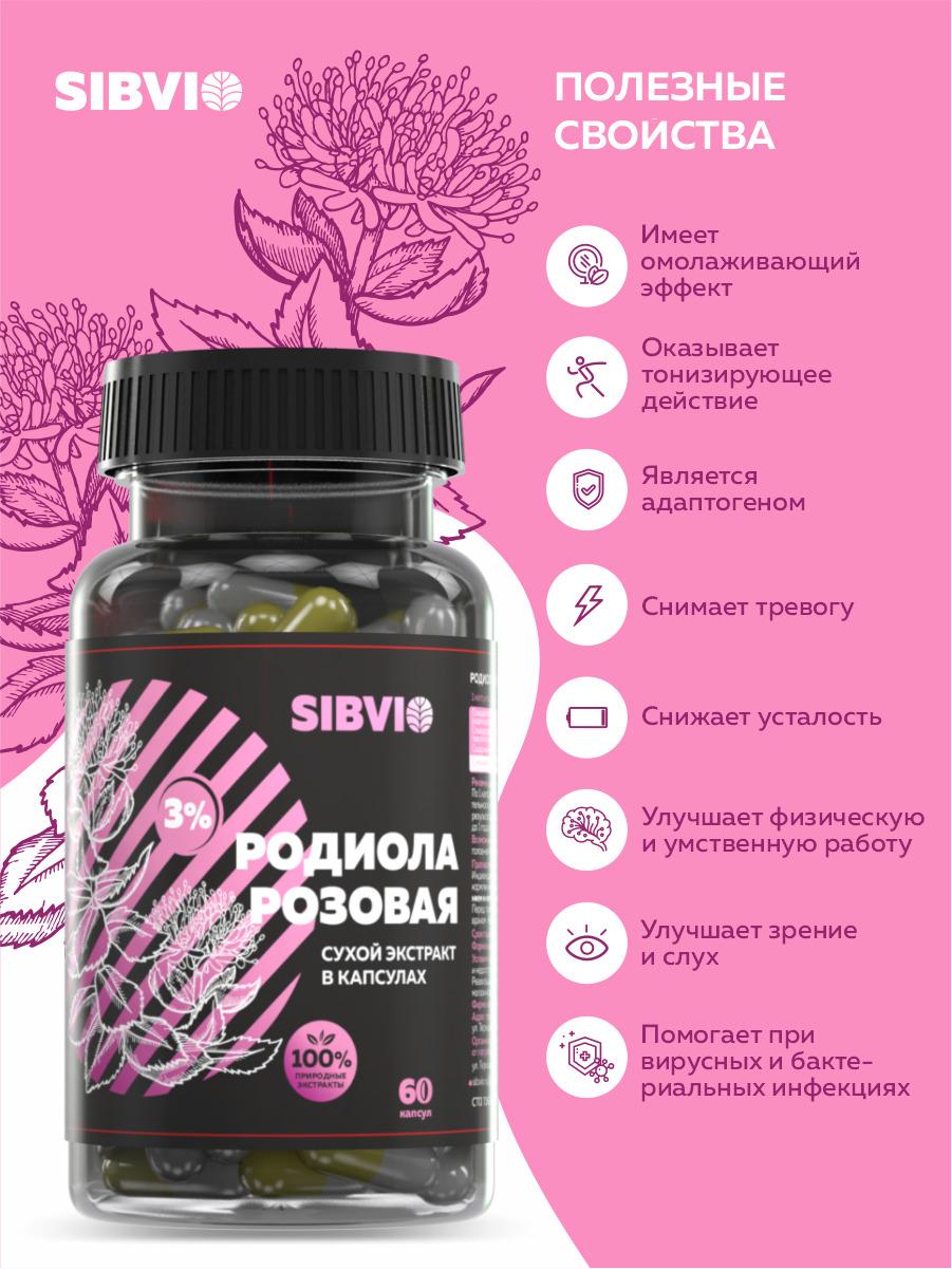 Родиола розовая (Золотой корень) 3%, экстракт корня, 60 капсул. Средство от стресса. Противовирусный препарат.