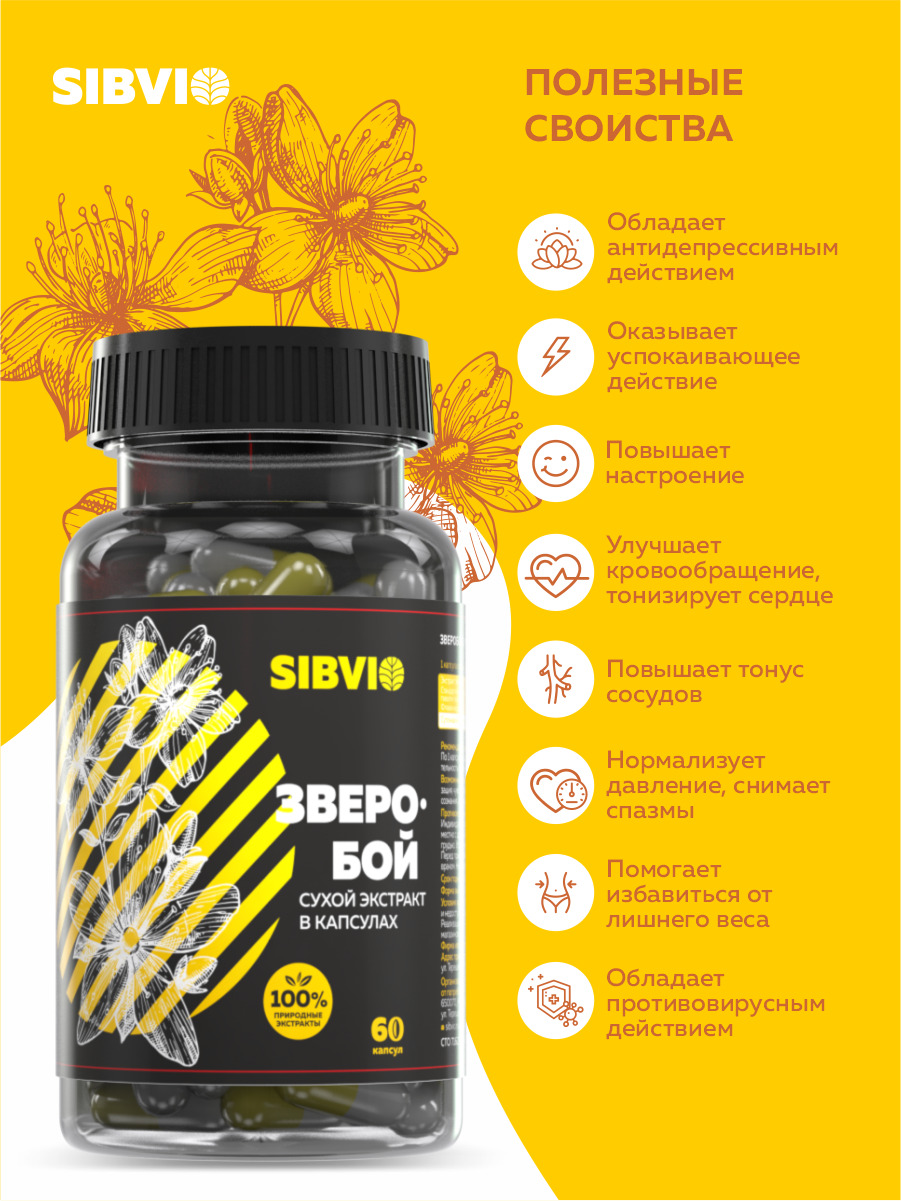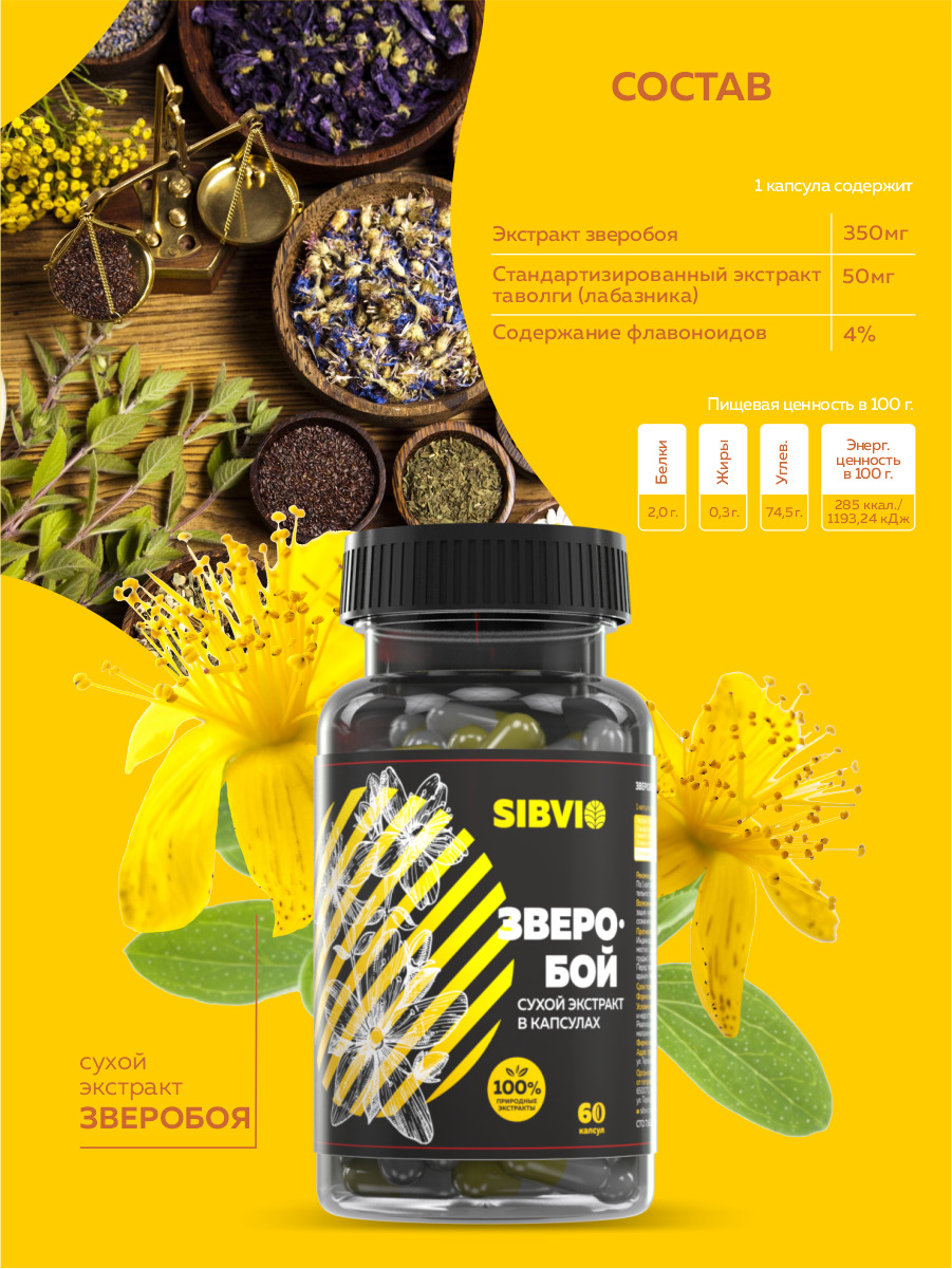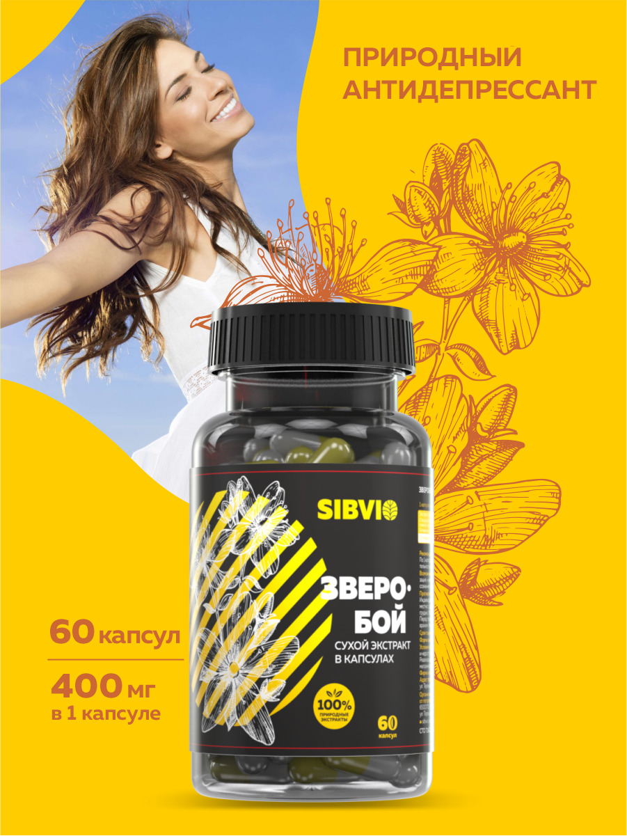 Зверобой, сухой экстракт в капсулах, 60 капсул по 400 мг. Природный антидепрессант, натуральное средство от стресса.