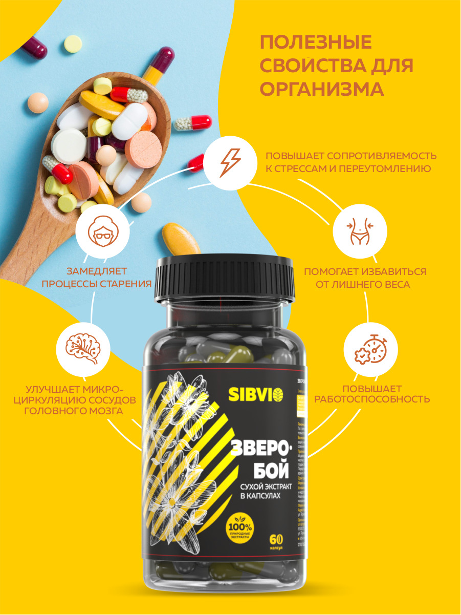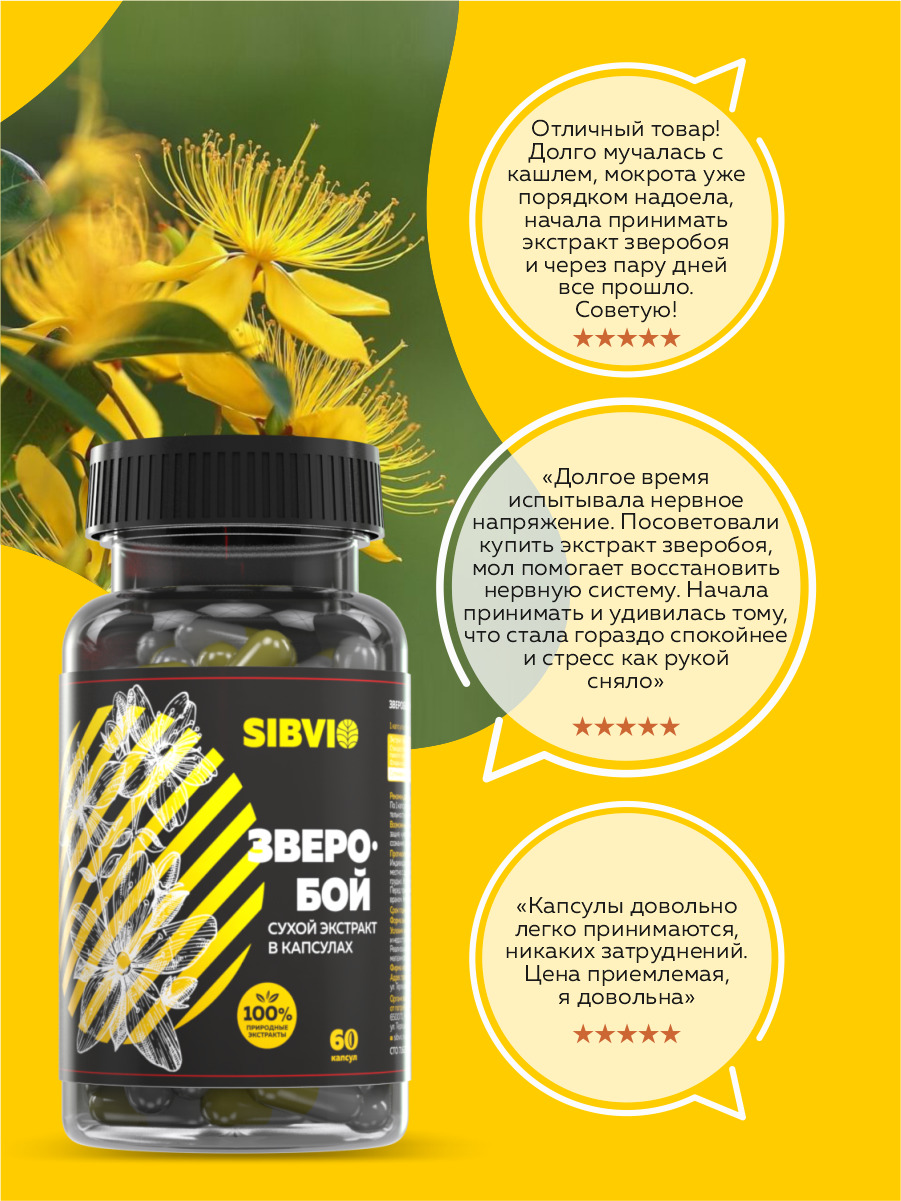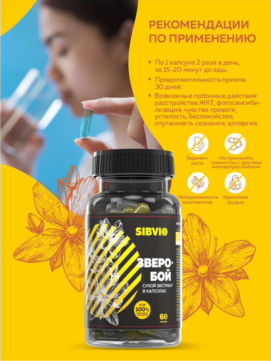 Зверобой, сухой экстракт в капсулах, 60 капсул по 400 мг. Природный антидепрессант, натуральное средство от стресса.