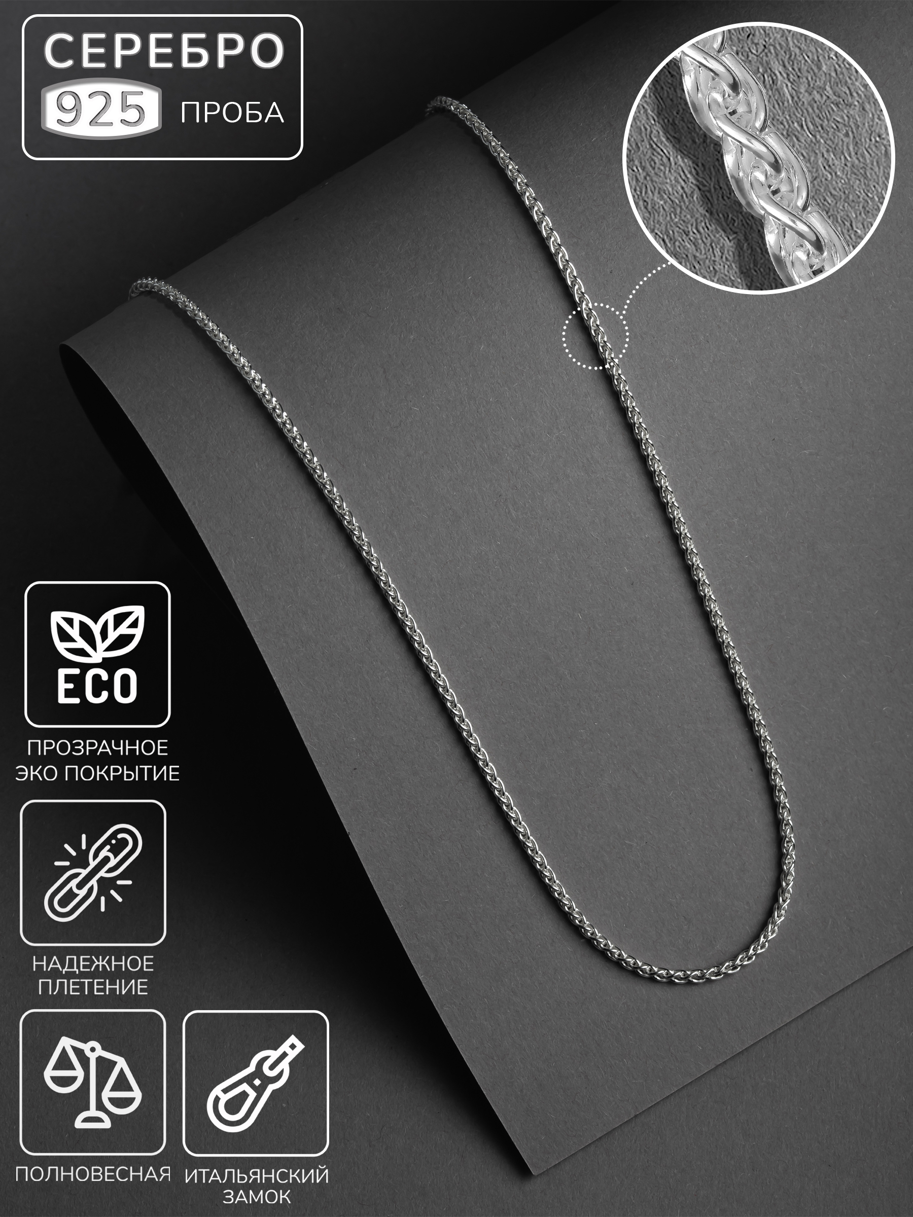 СИДАН Цепочка серебряная с прозрачным ЭКО покрытием (не родированная) 925, "Колос" / Без огранки, полновесная