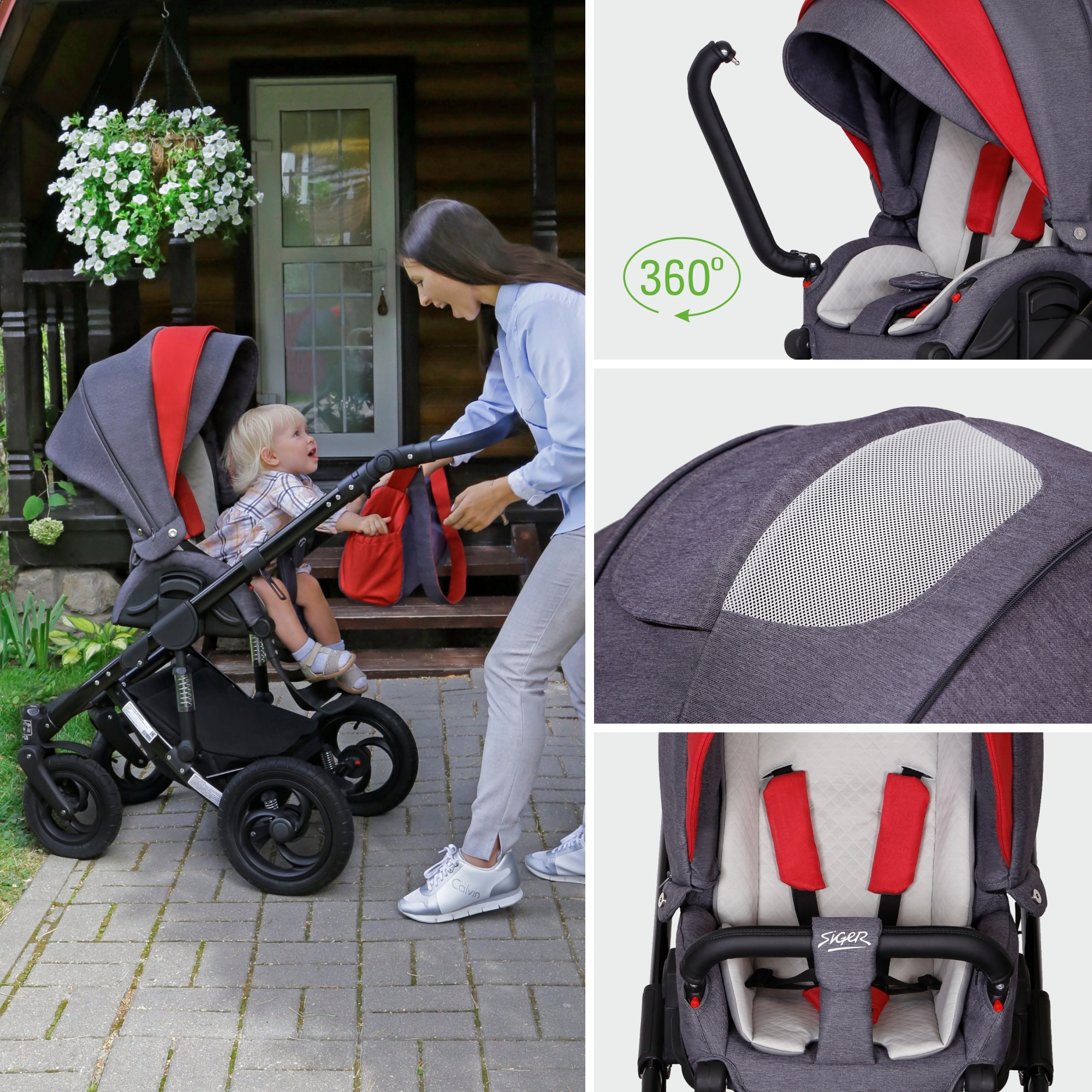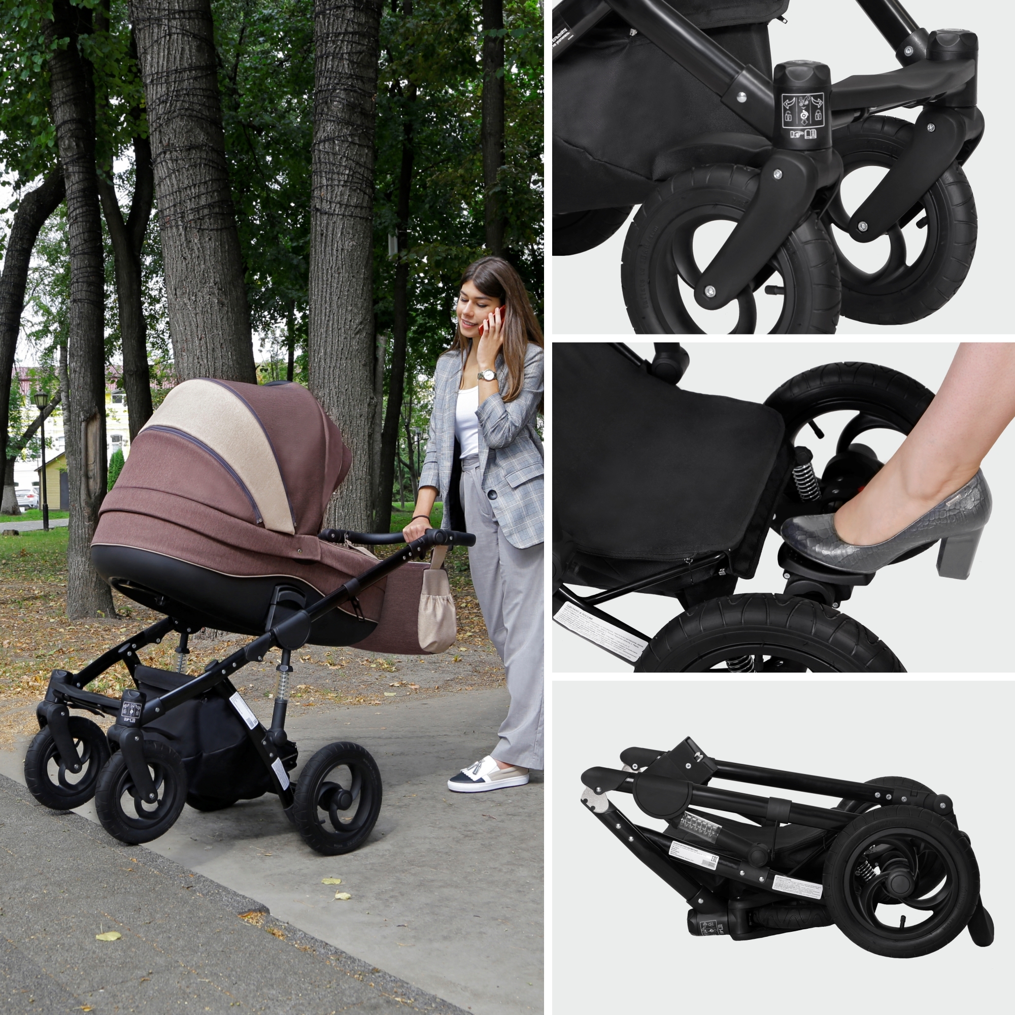 Детская коляска 2 в 1, трансформер, Siger Alba, бежевый/коричневый