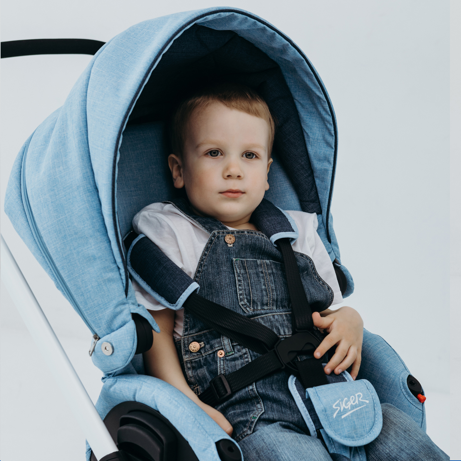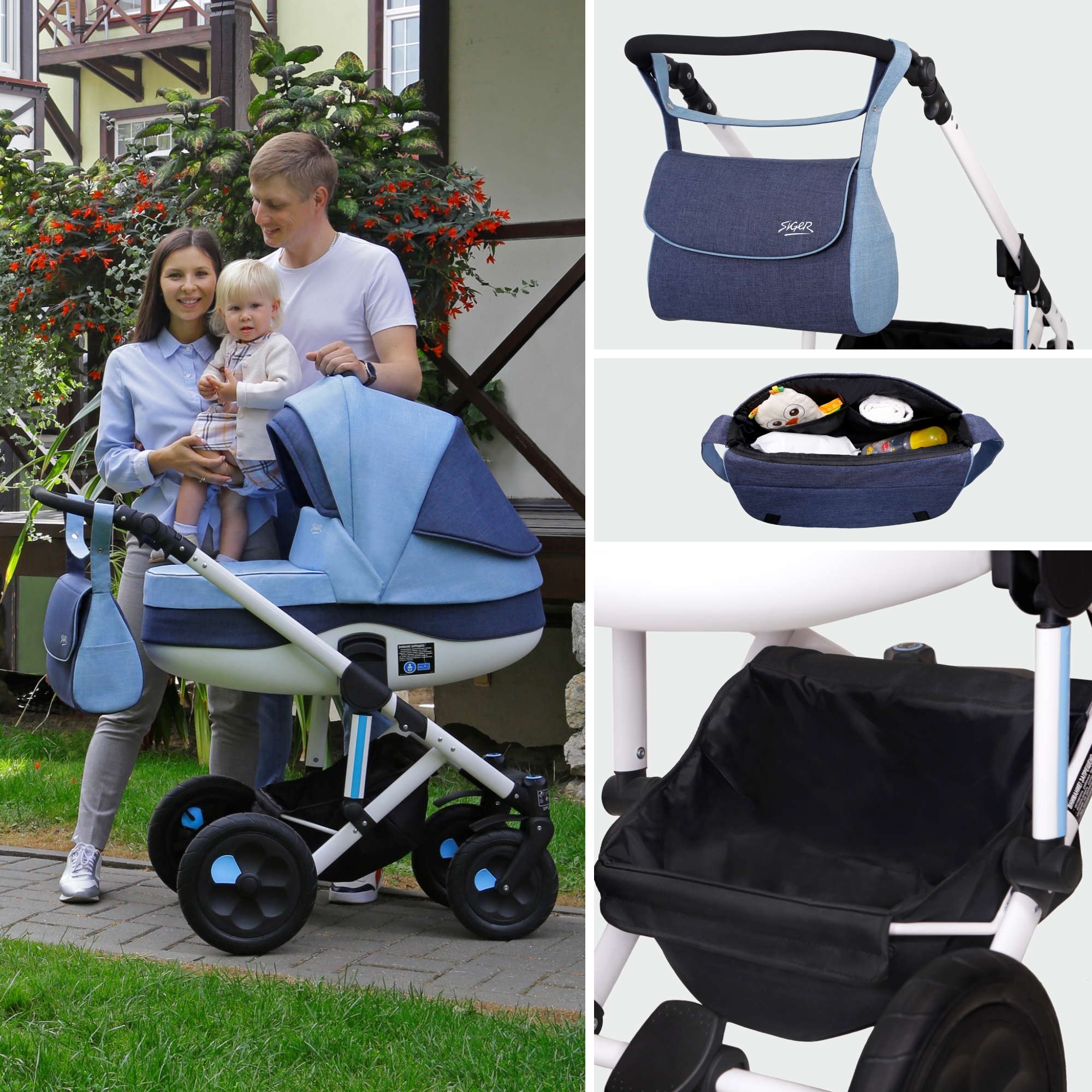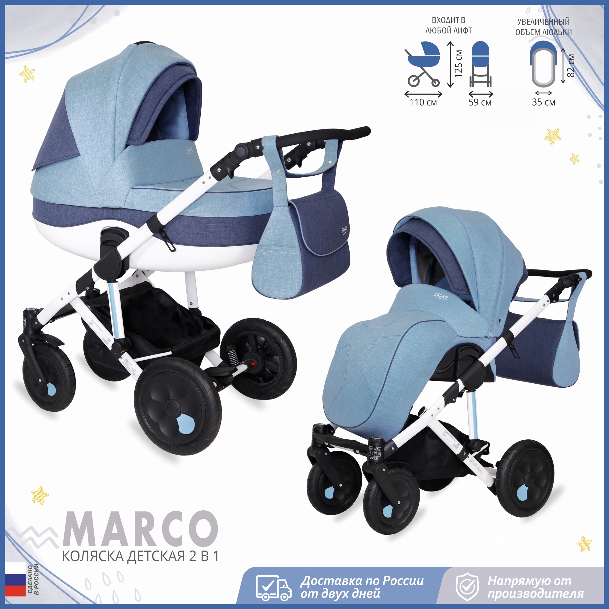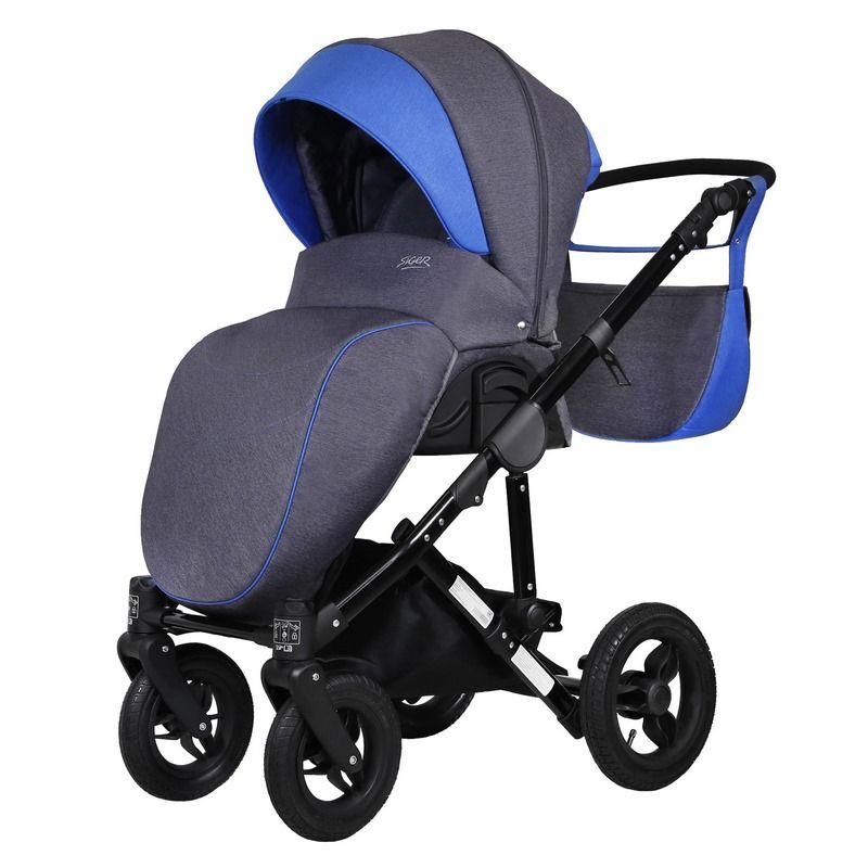 Детская коляска 2 в 1, трансформер, Siger Marco, светло-синий/темно-синий