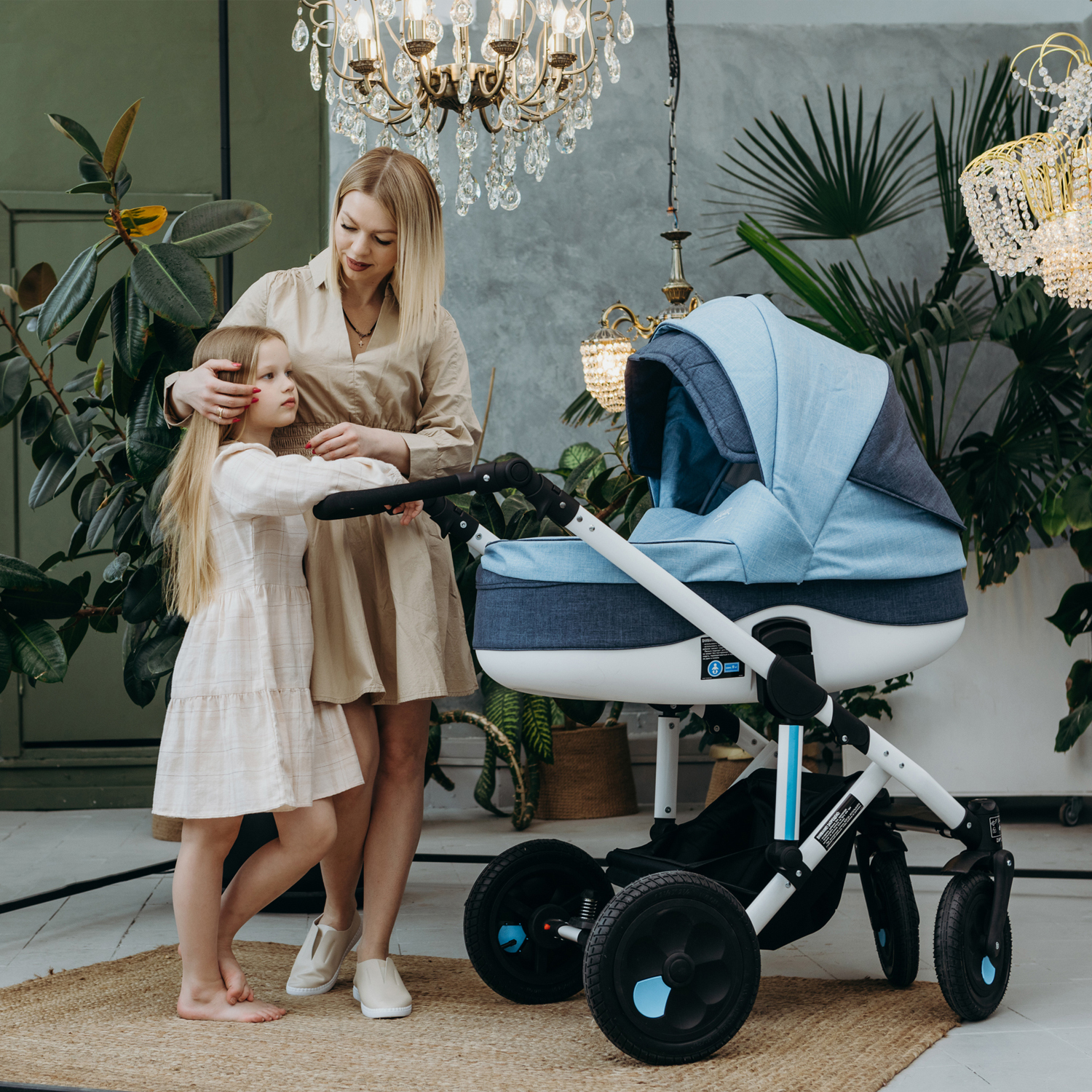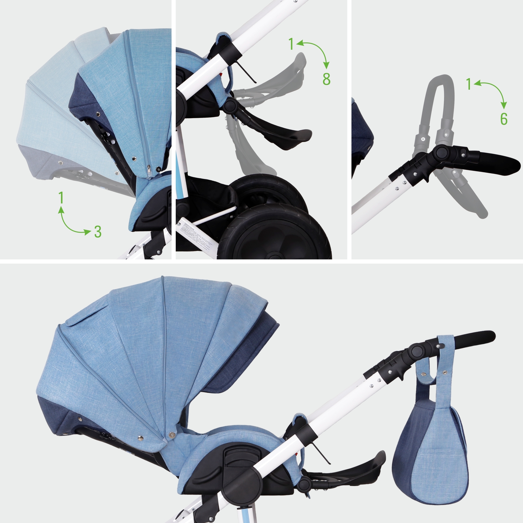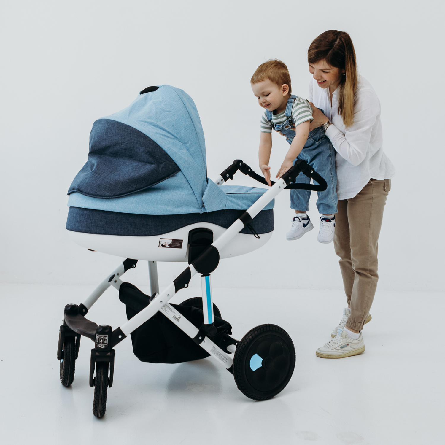 Детская коляска 2 в 1, трансформер, Siger Marco, светло-синий/темно-синий