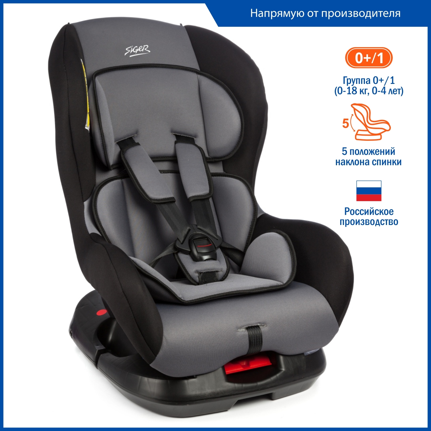 Автокресло удерживающее, детское Siger Наутилус цвет серый, группа 0 - 1, от 0 до 18 кг, 0 - 4 лет.