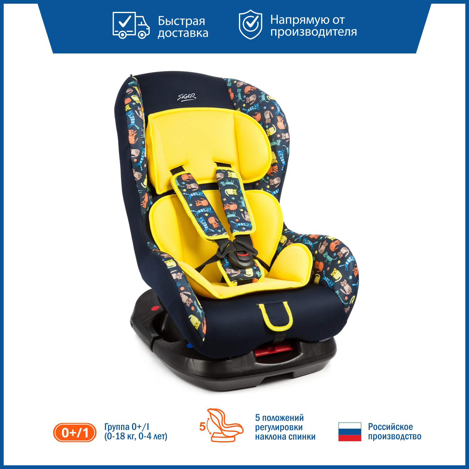 Автокресло Siger "Наутилус. Котики" от 0 до 18 кг