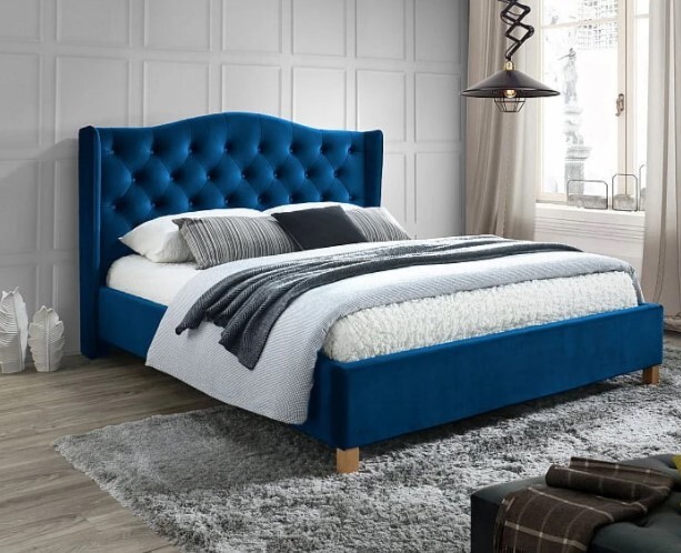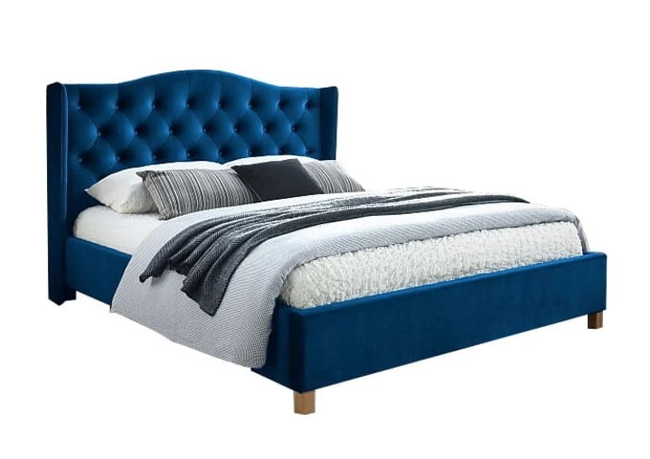 Двуспальная кровать ASPEN VELVET темно-синий, 160/200, 160х200 см, SIGNAL meble