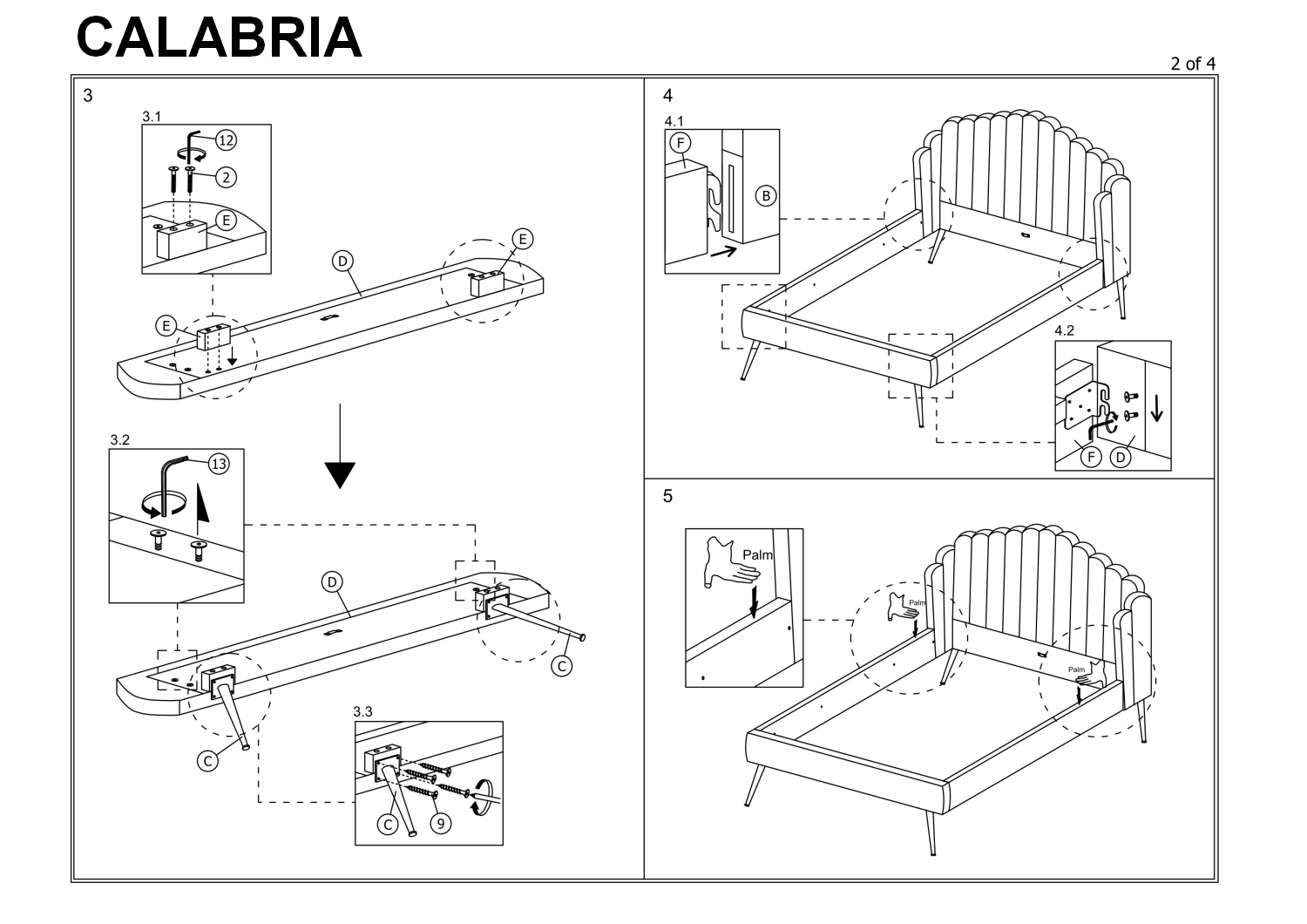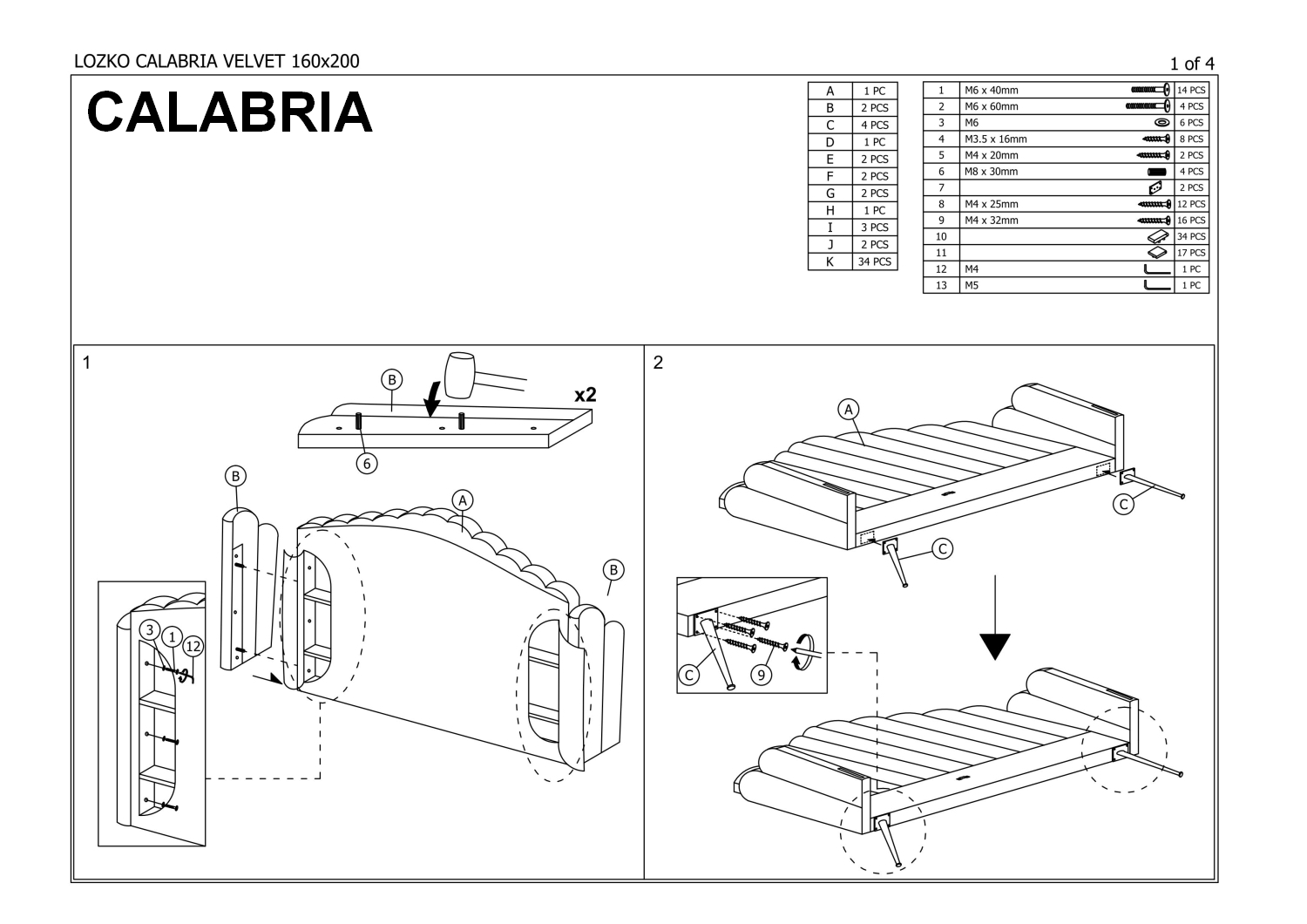 Двуспальная кровать CALABRIA 160 VELVET, 160х200 см, SIGNAL meble