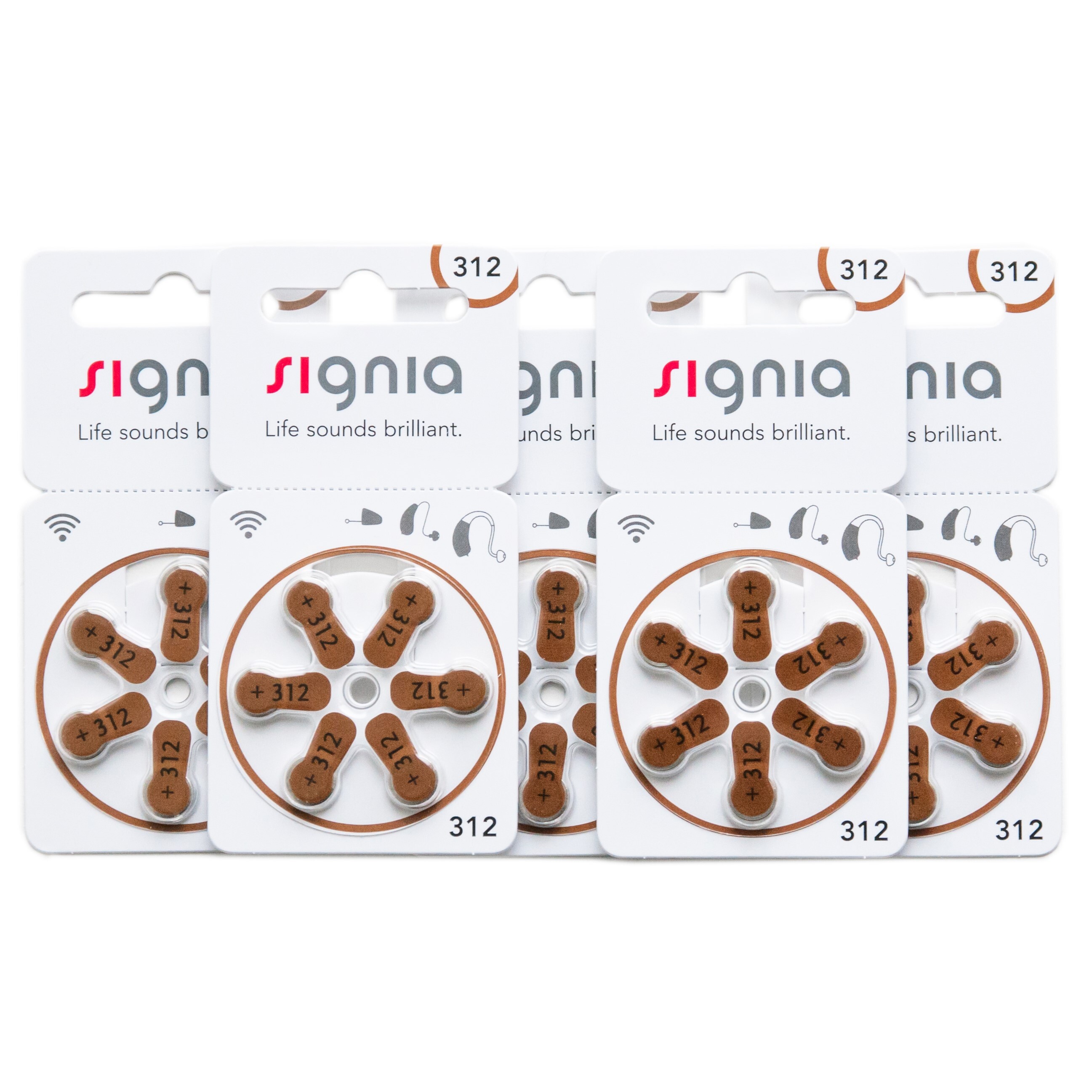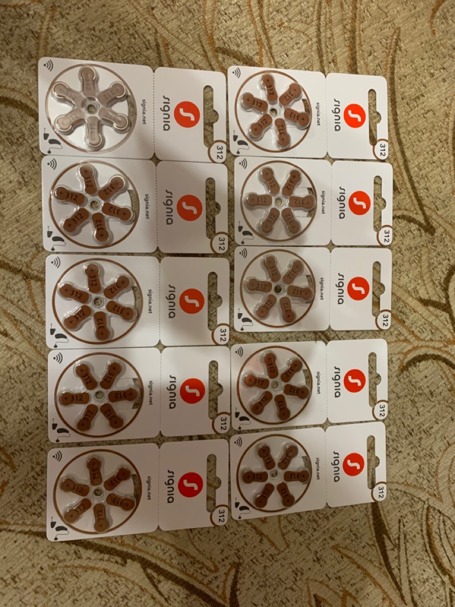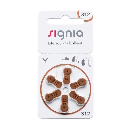 Батарейки Signia 312 (PR41) для слуховых аппаратов, 5 блистеров (30 батареек).