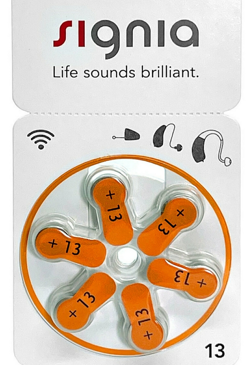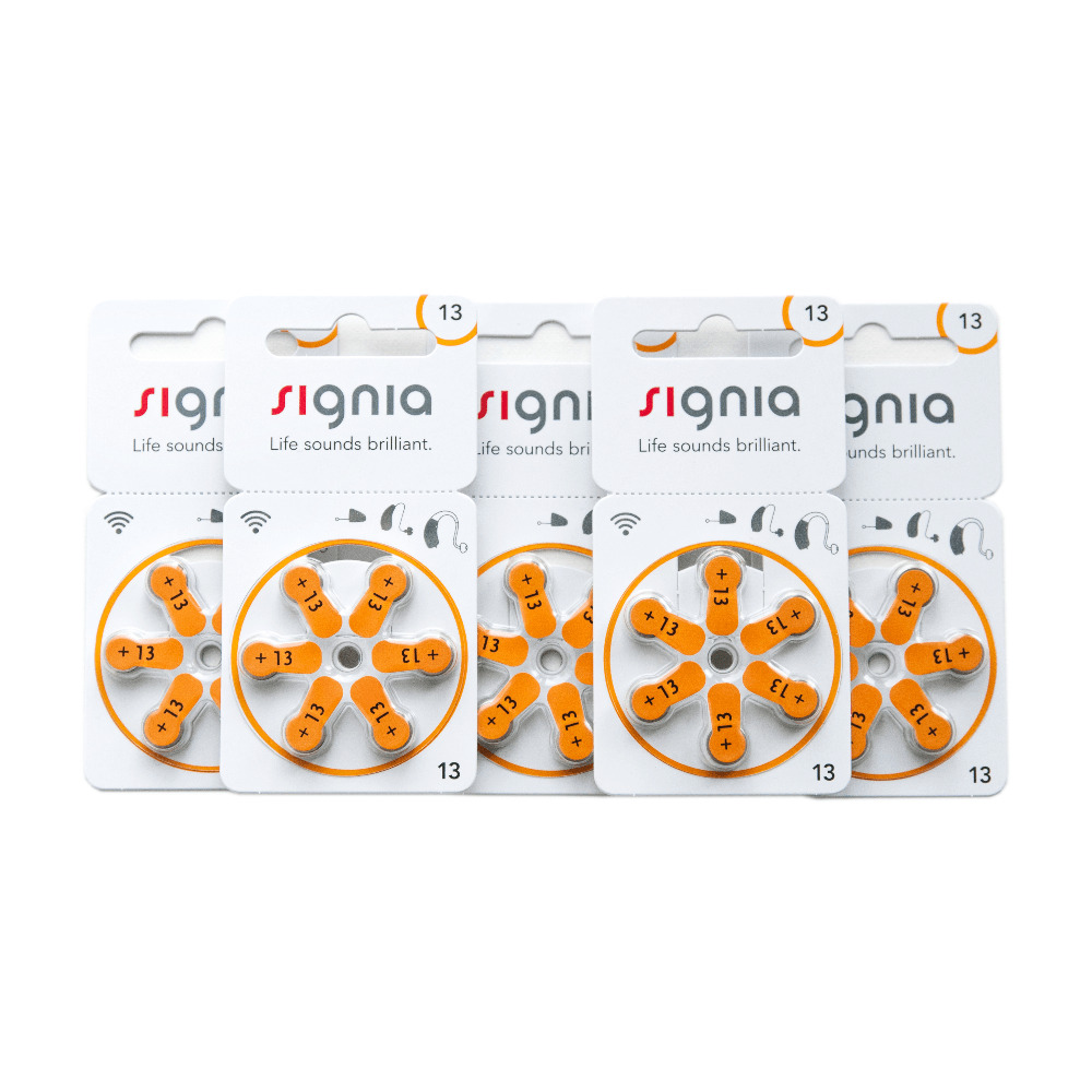 Батарейки Signia 13 для слуховых аппаратов, 5 блистеров (30 батареек).