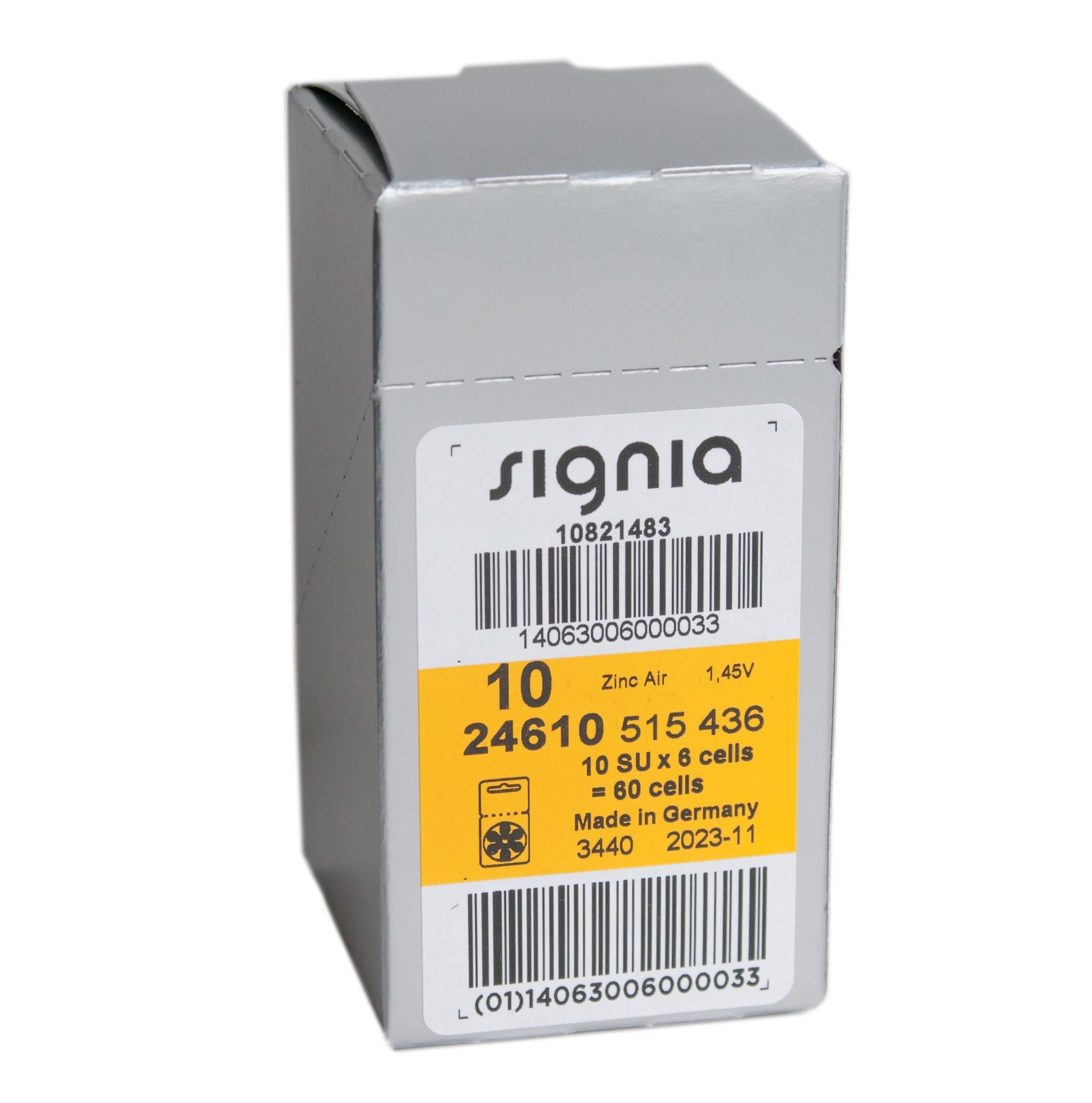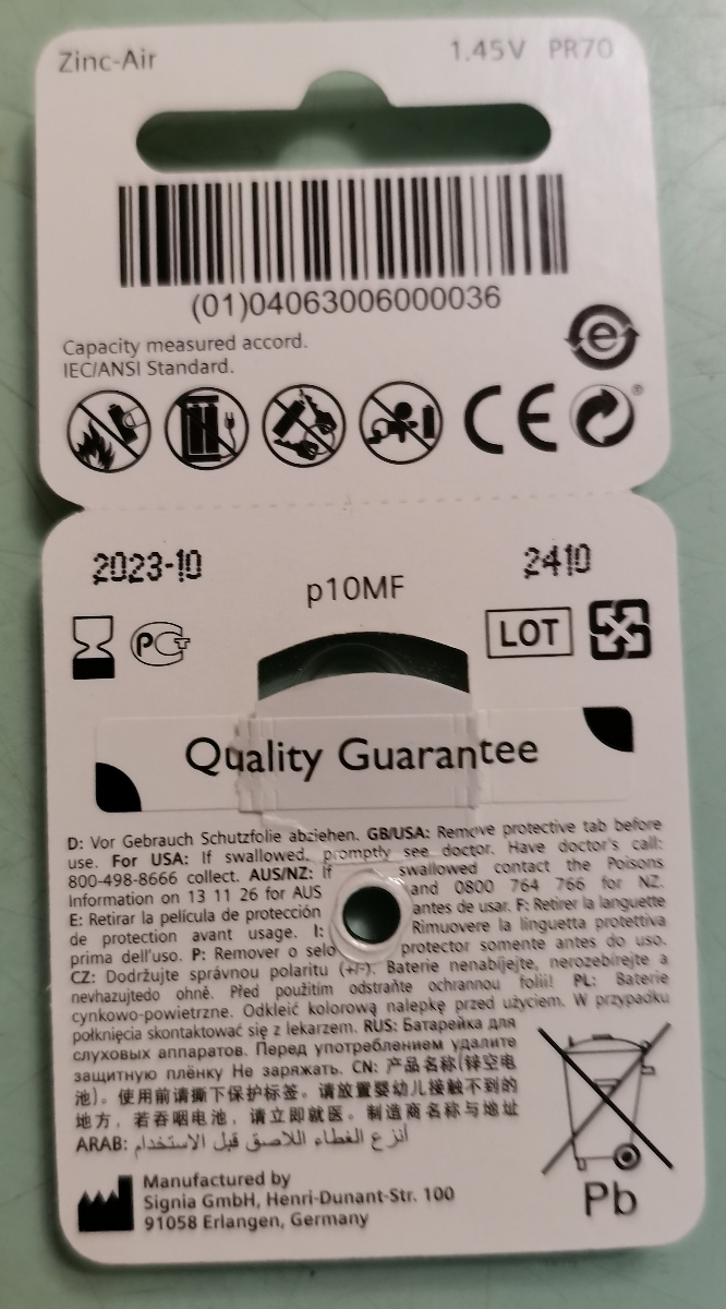 Батарейки Signia 10 (PR70) для слуховых аппаратов, 60 батареек