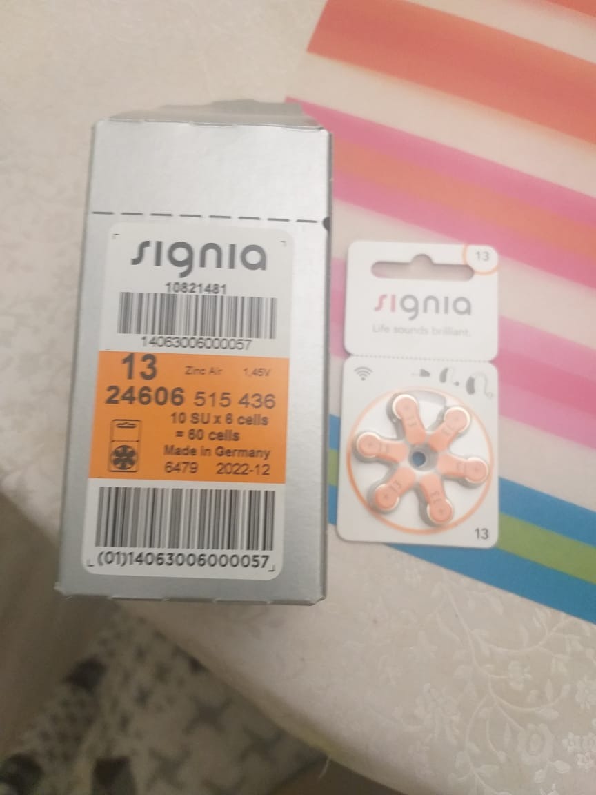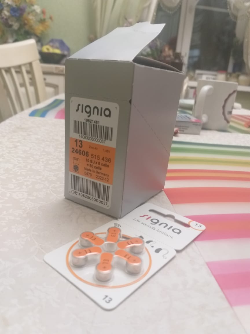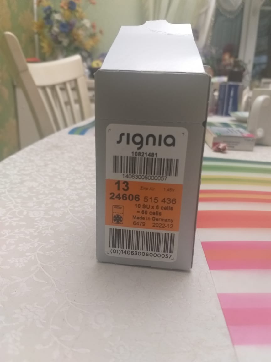 Батарейки Signia 13 для слуховых аппаратов, 10 блистеров, 60 батареек