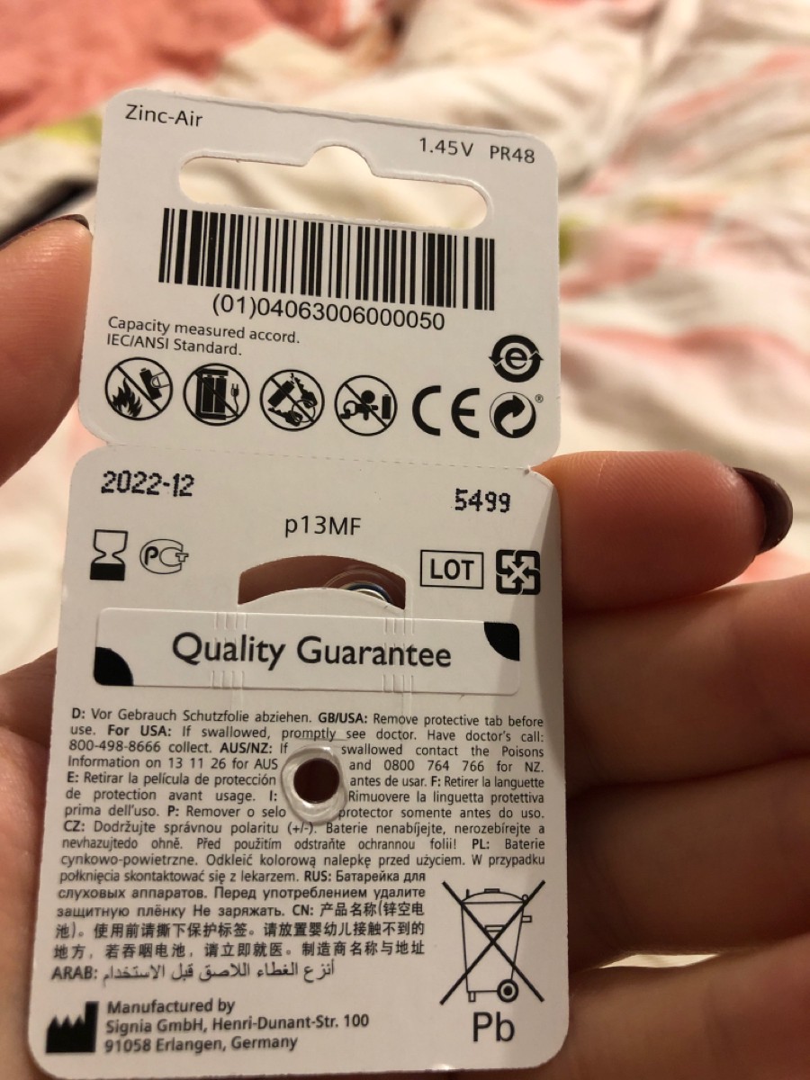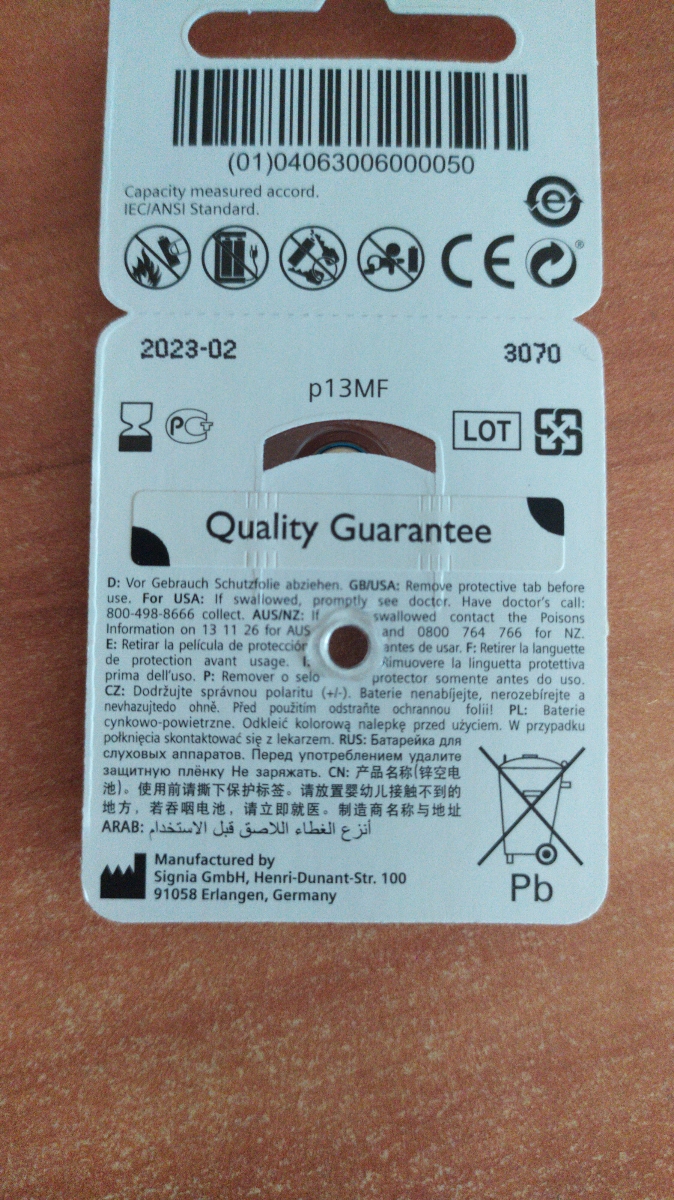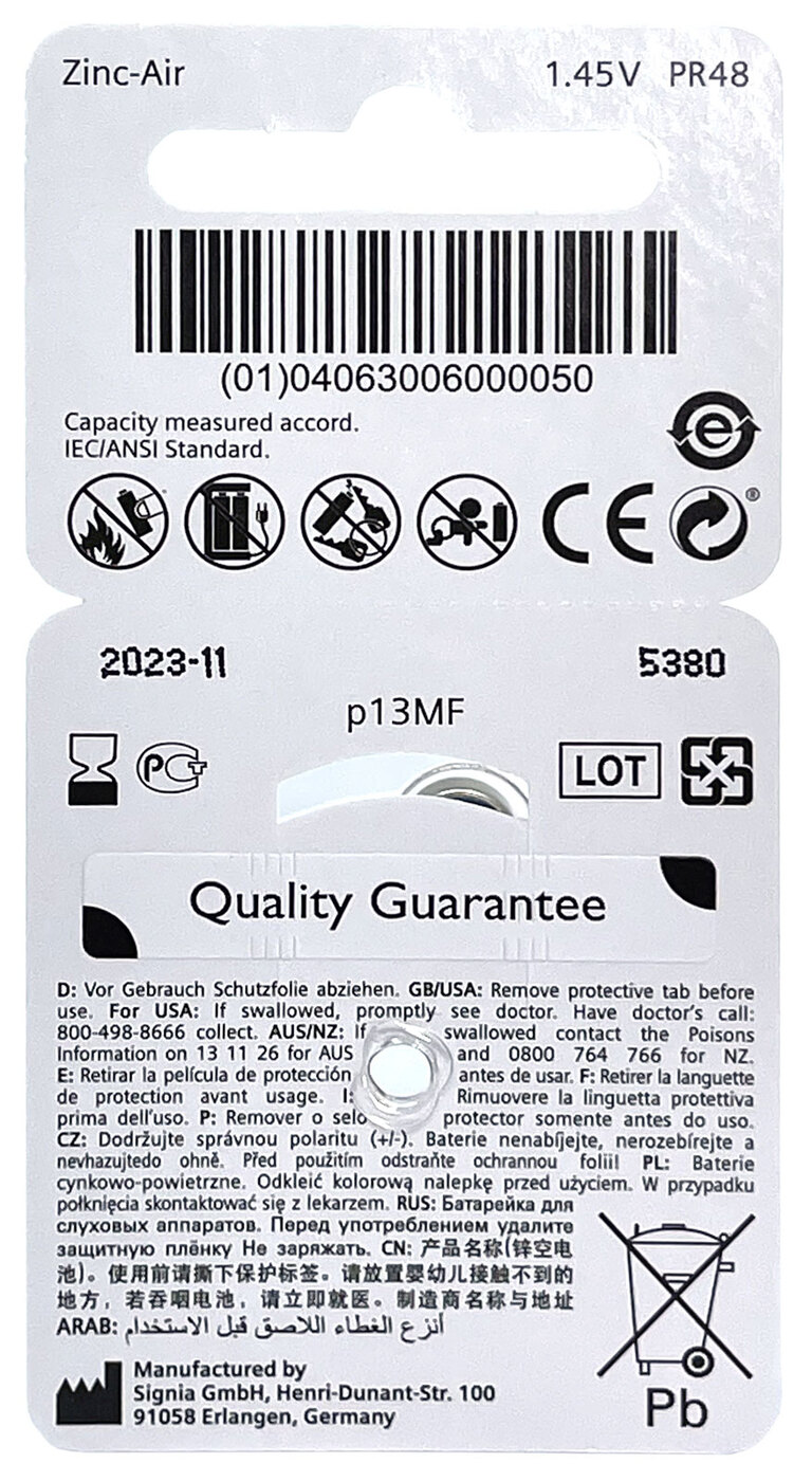 Батарейки Signia 13 для слуховых аппаратов, 5 блистеров (30 батареек)