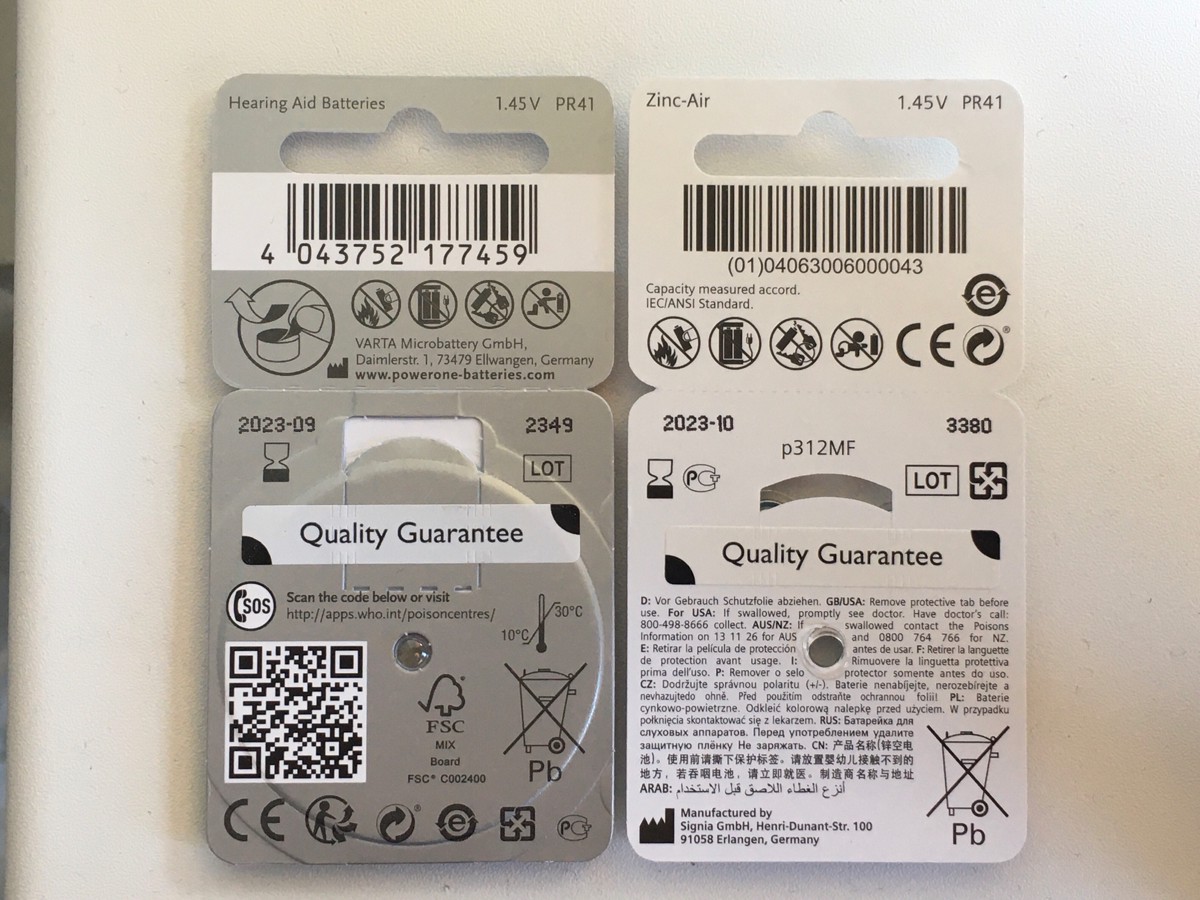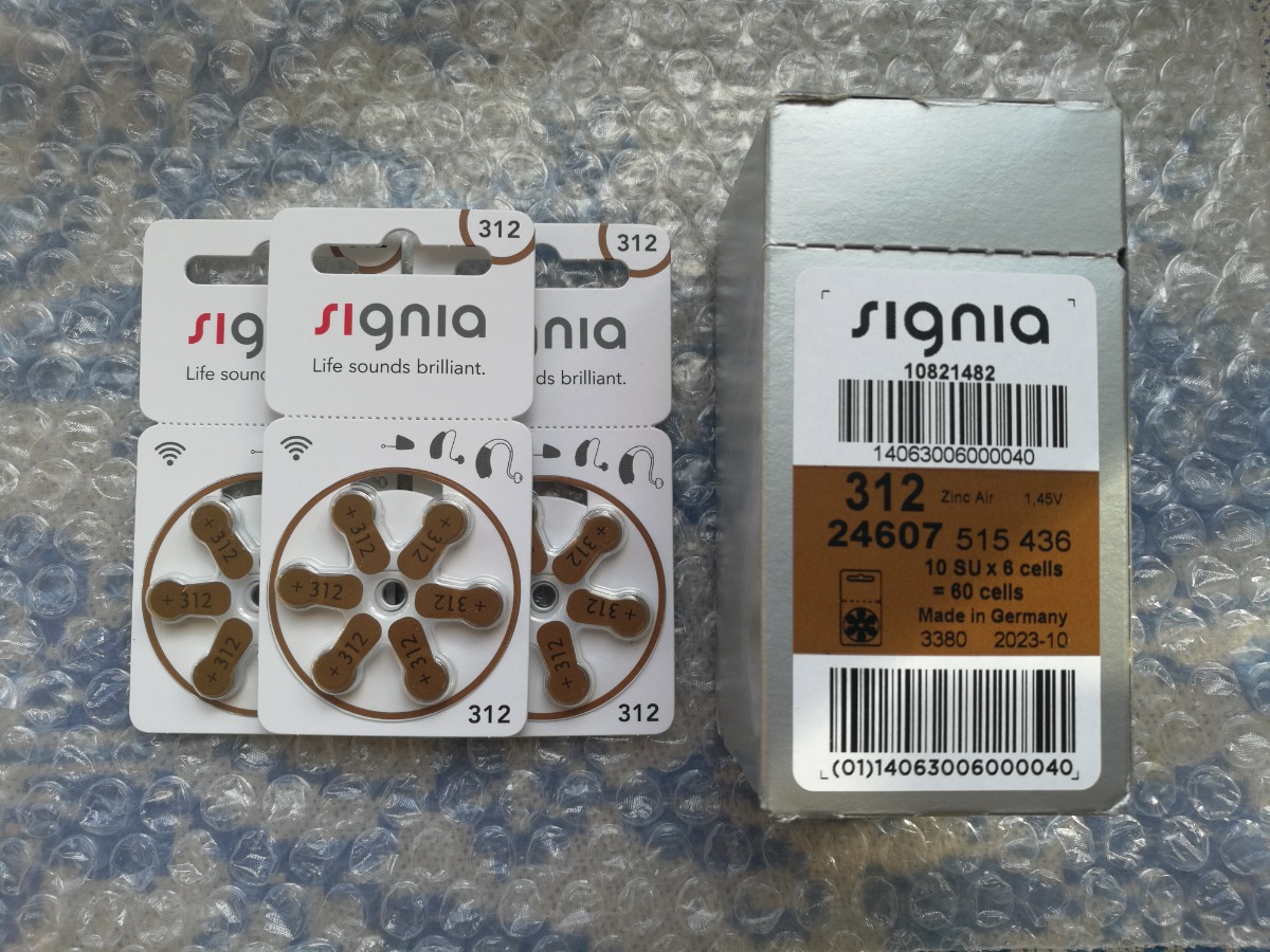 Батарейки Signia 312 (PR41) для слуховых аппаратов, 5 блистеров (30 батареек).