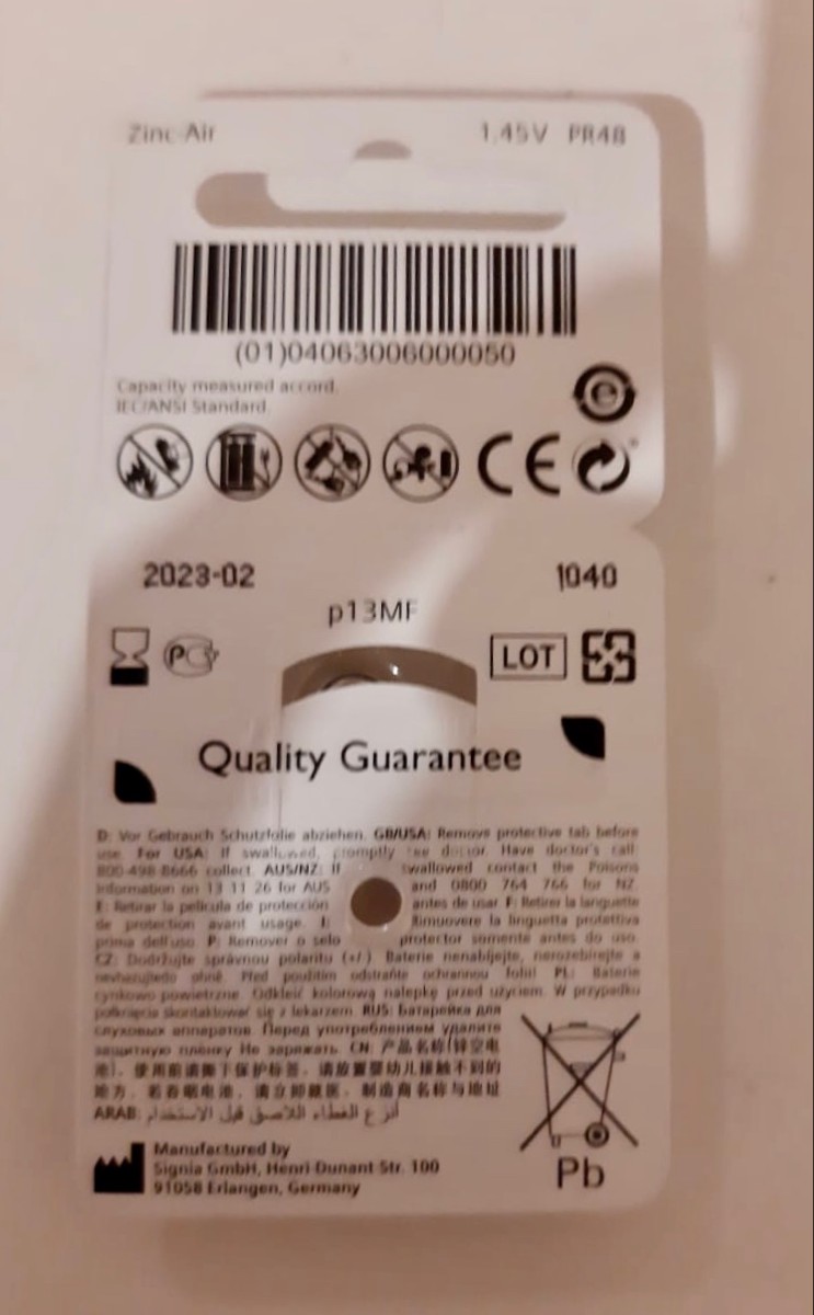 Батарейки для слуховых аппаратов Signia p13, 2 блистера (12 батареек)