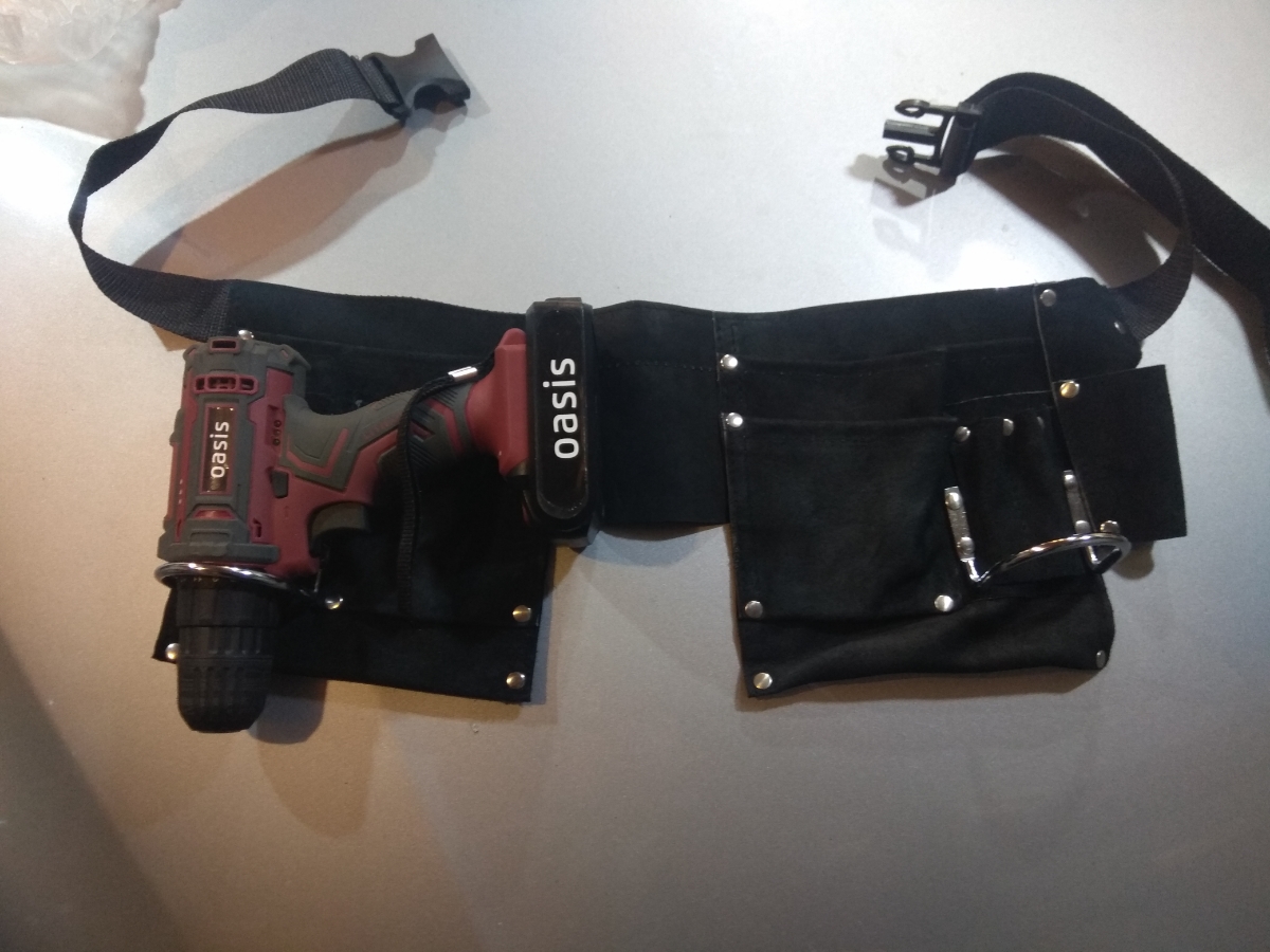 Кожаный пояс для инструментов, 11 карманов (черный)