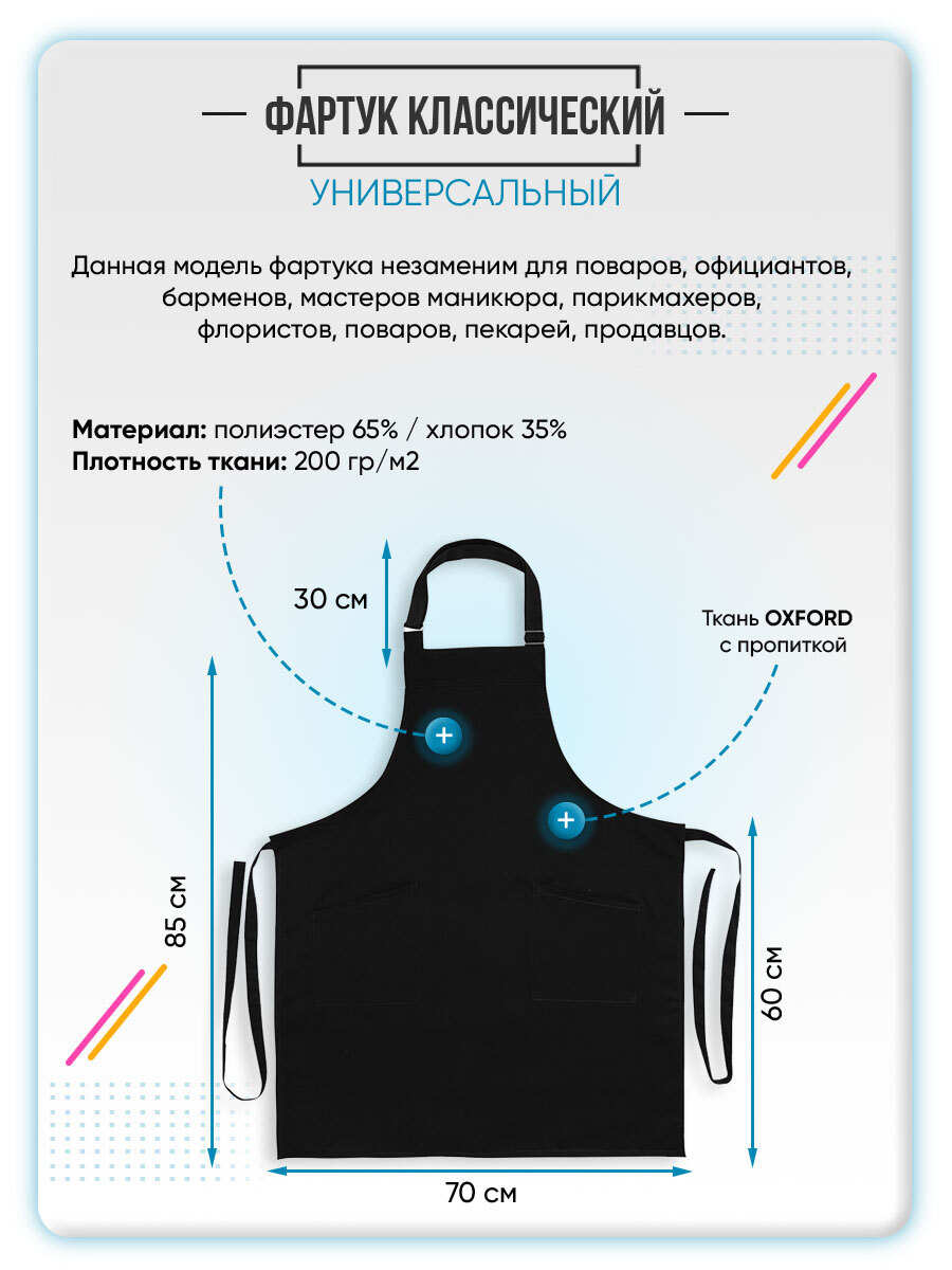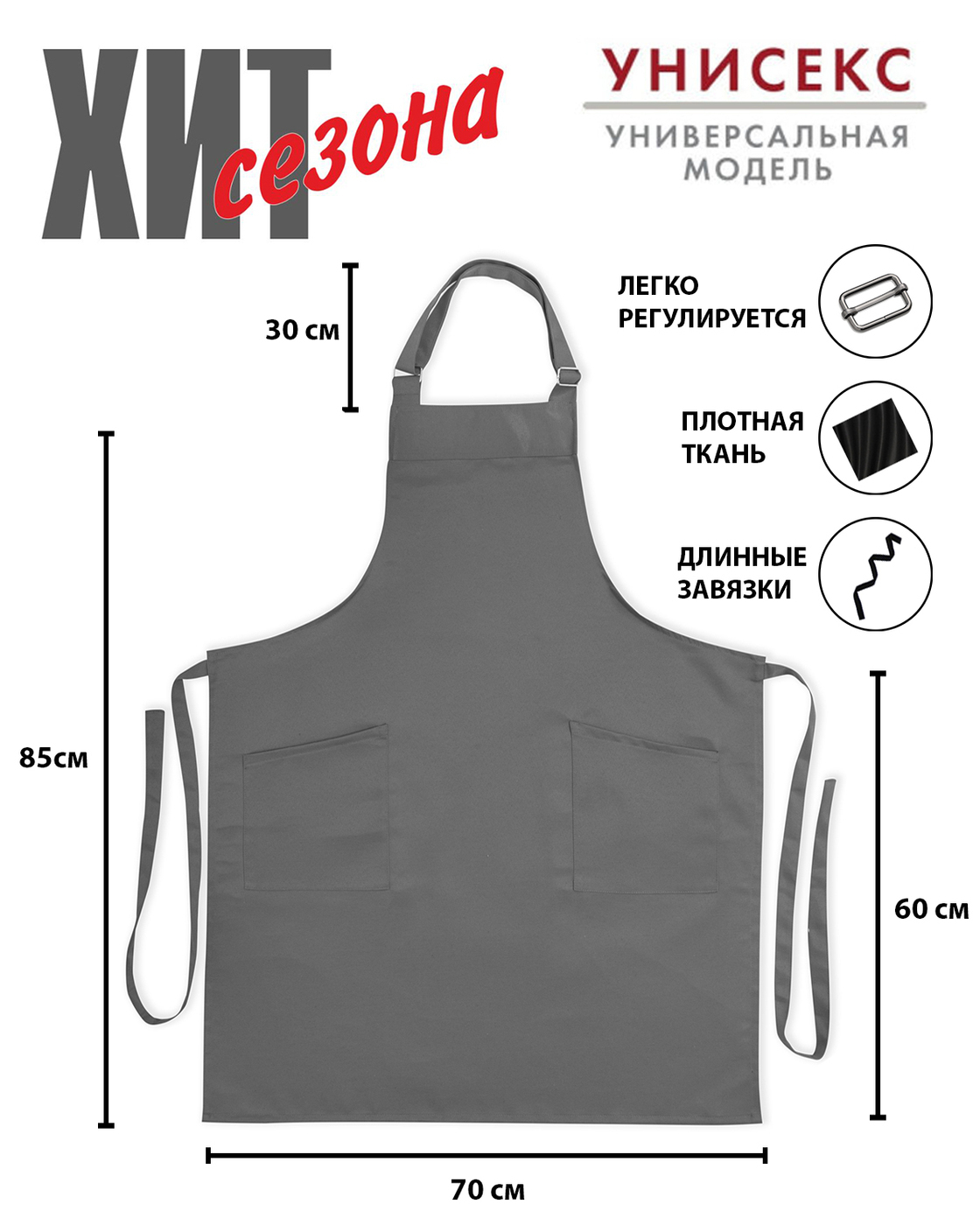 Фартук универсальный с карманами с регулятором для официанта Sil-Group / светло-серый 1шт.
