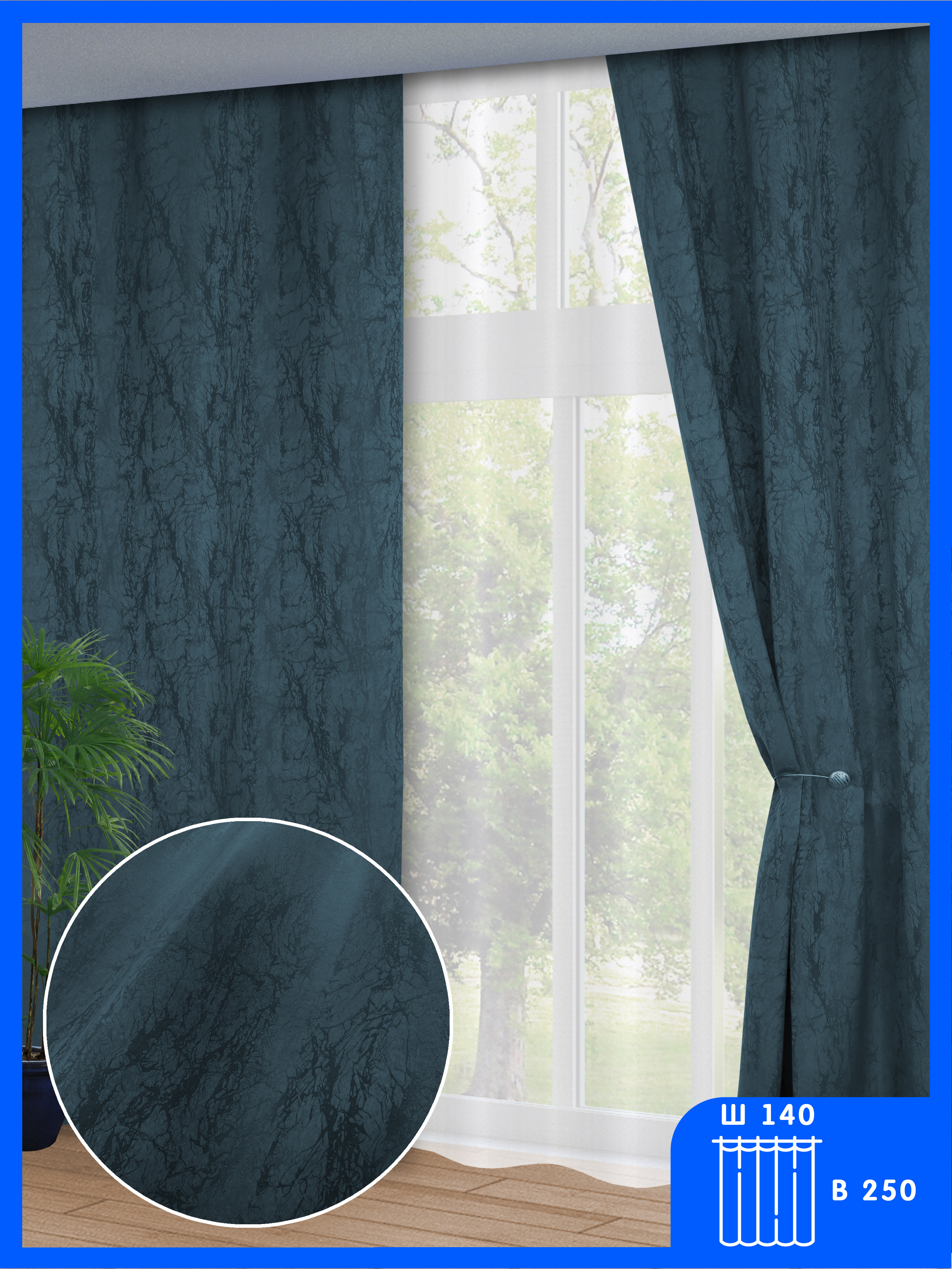 Шторы Silk Way для спальни и гостиной, портьера "Riviera", жаккардовый софт, 140x250см, сапфировый