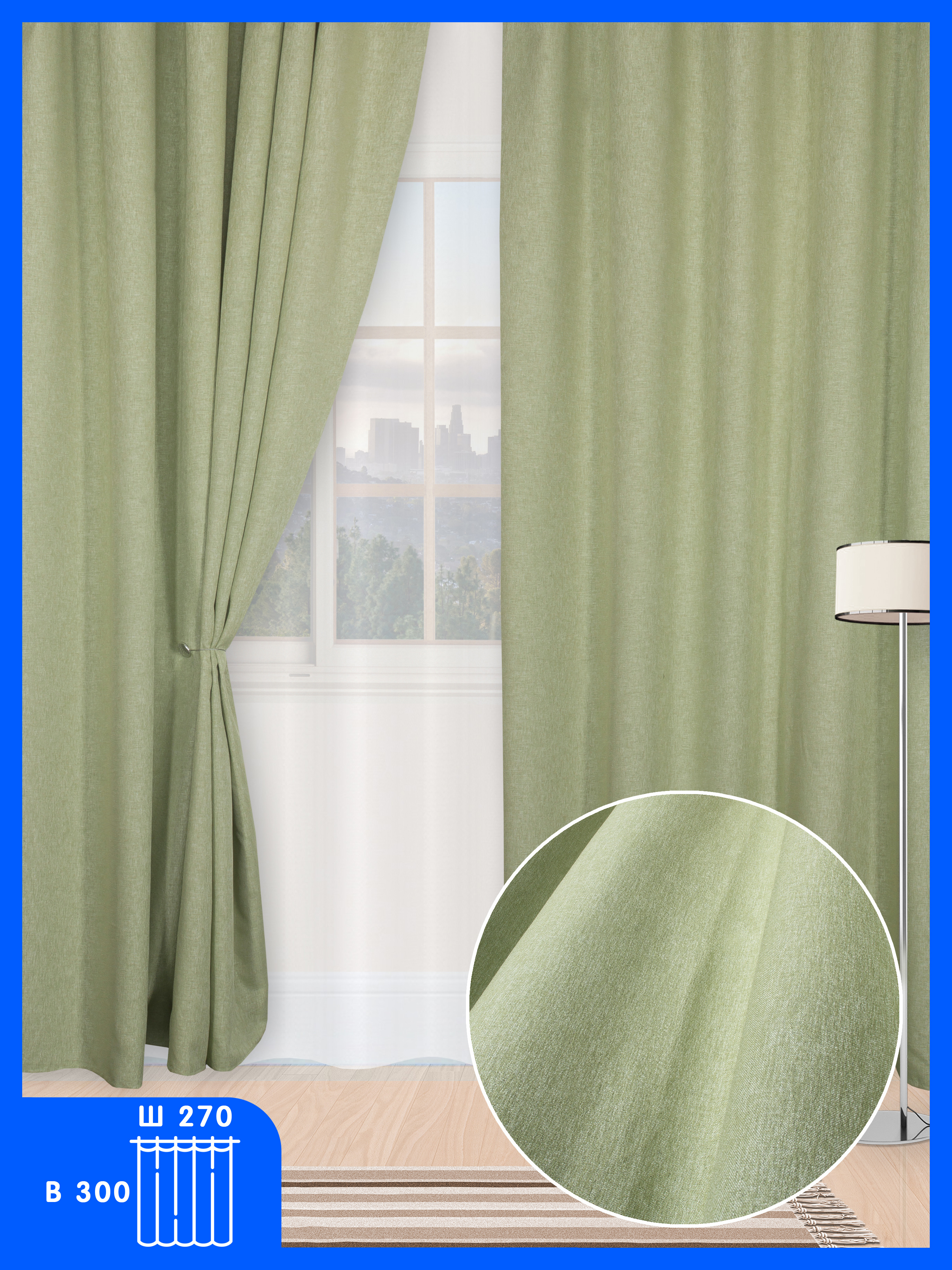 Шторы Silk Way для спальни и гостиной, портьера "Melange", блэкаут, лен, 270x300см, морская волна