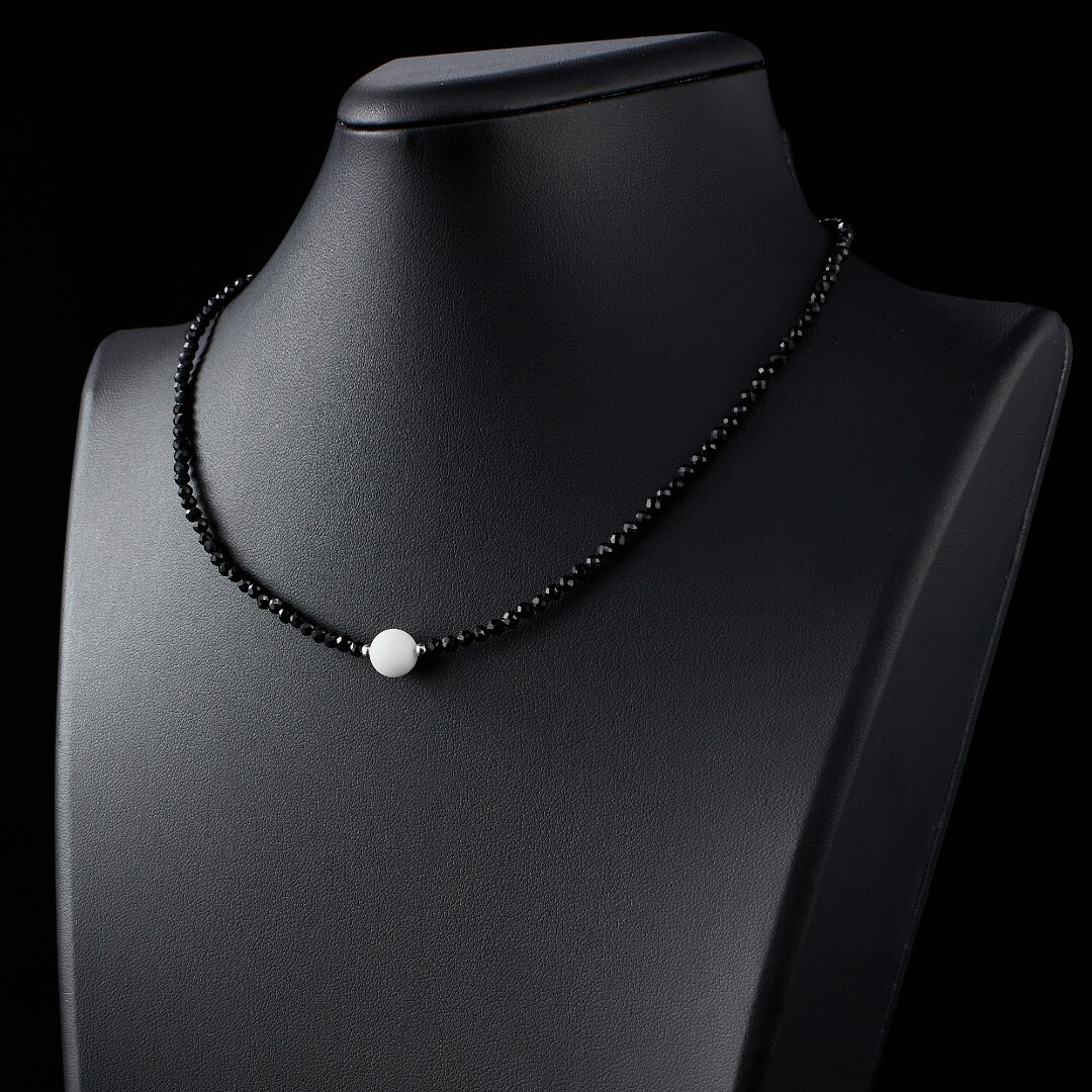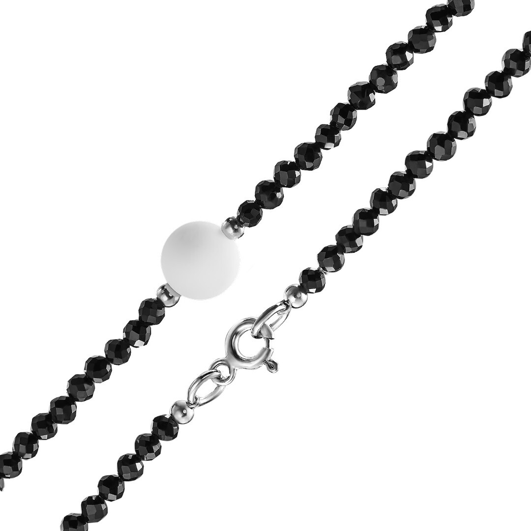 SILVEROFF Бусы Серебряные женские из черной шпинели и бусины из агата, родирование