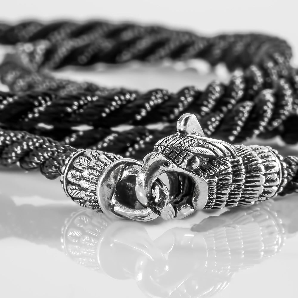 SILVEROFF Шнурок Ювелирный Гайтан черный, Шелк 3 мм с серебряным замком "Верный орел", Чернение