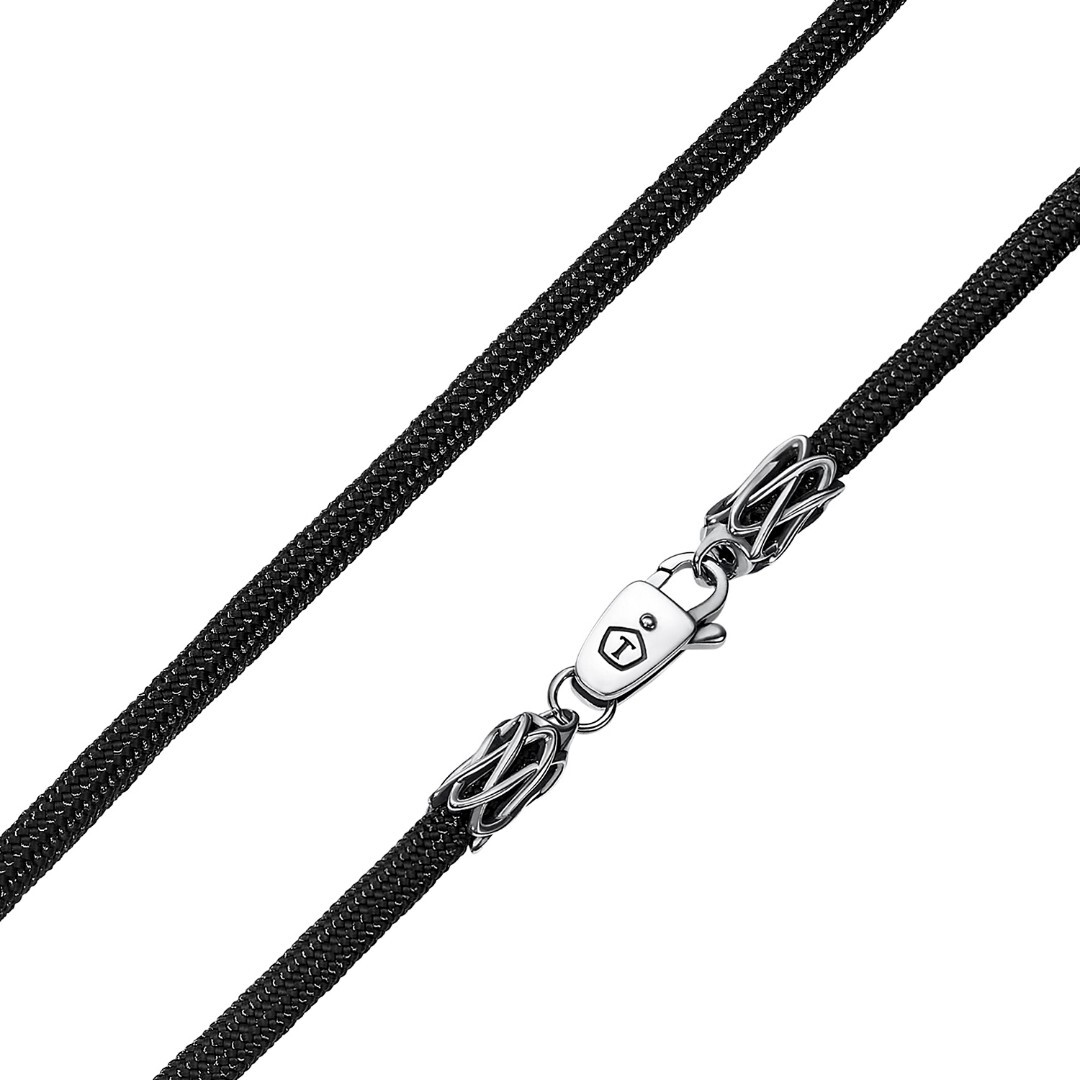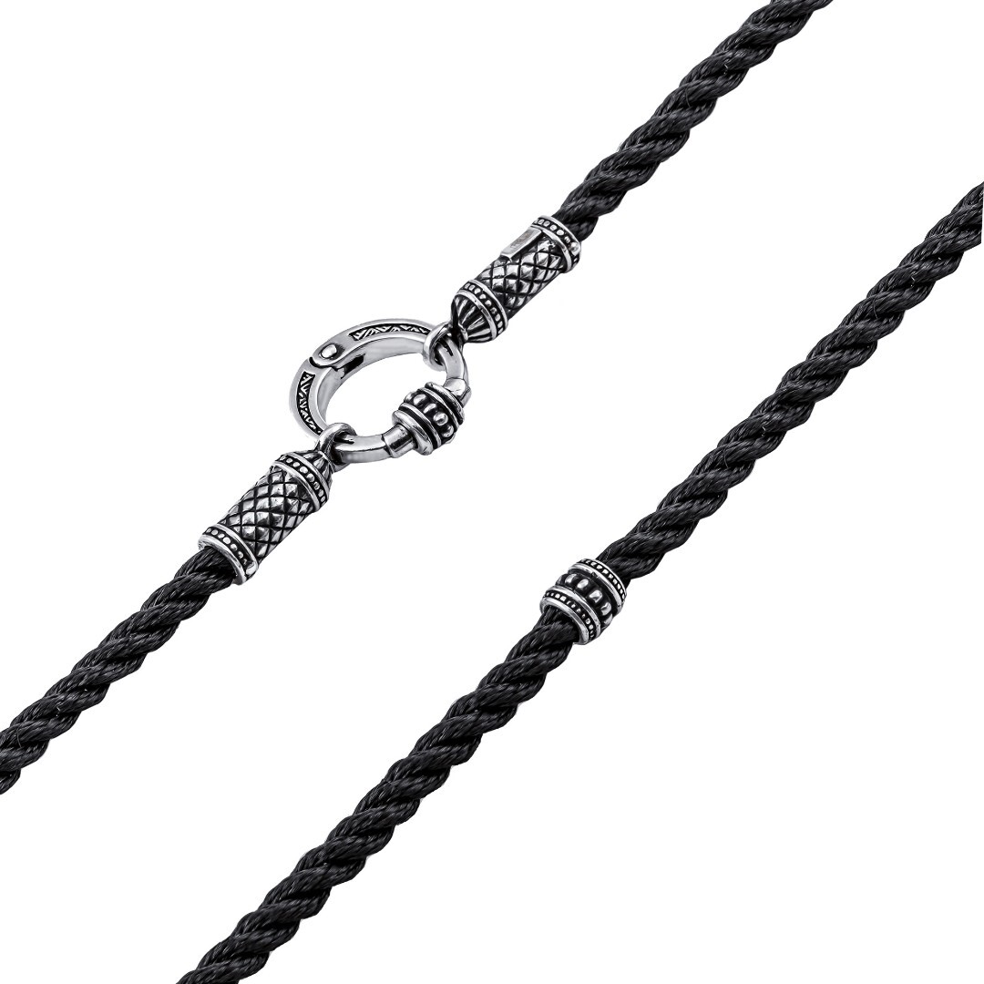 SILVEROFF Шнурок Ювелирный Гайтан черный, Паракорд, Нейлон 4 мм с серебряным замком "Зигзаг", Чернение