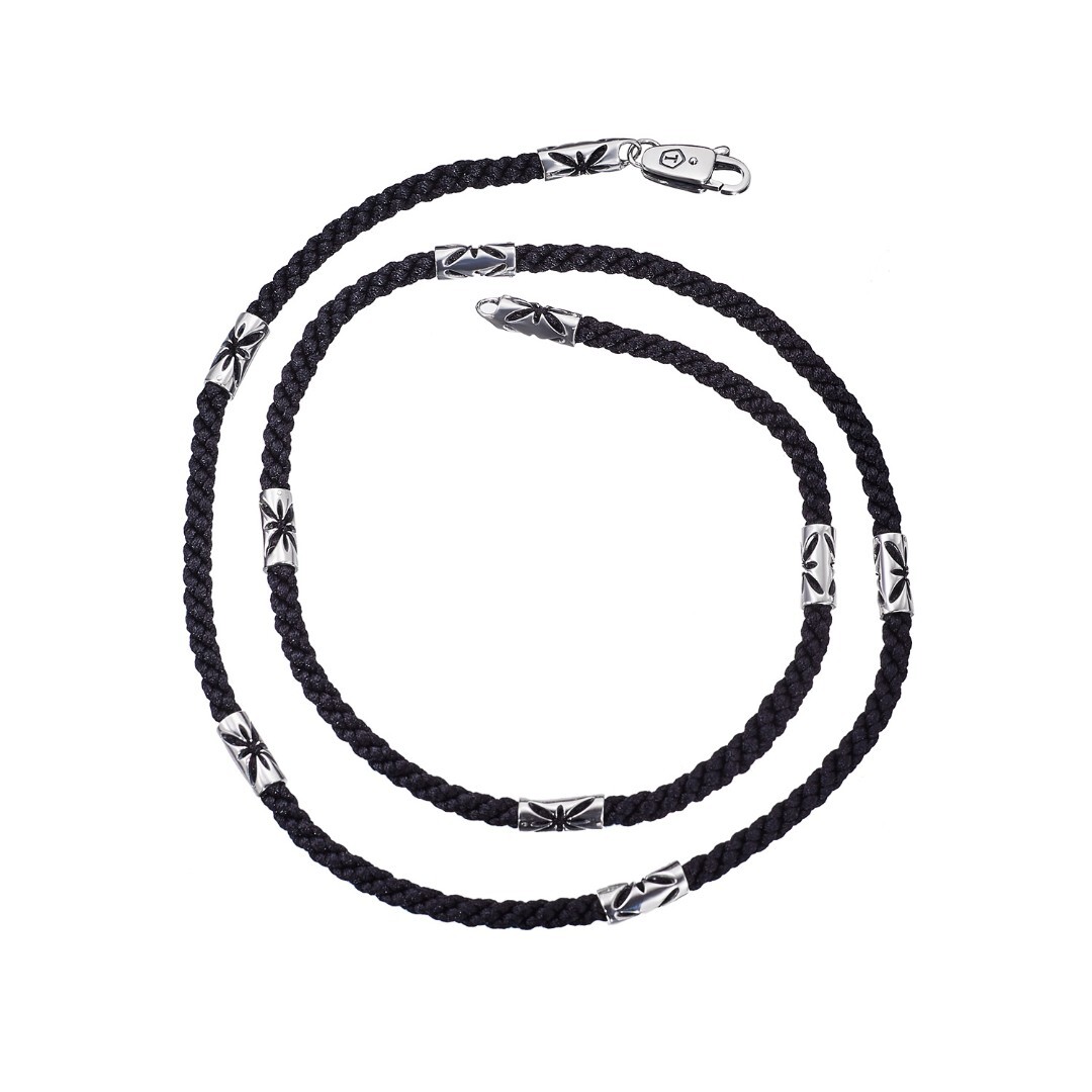SILVEROFF Шнурок Ювелирный Гайтан черный, Шелк 3 мм с серебряными бусинами и замком, Чернение