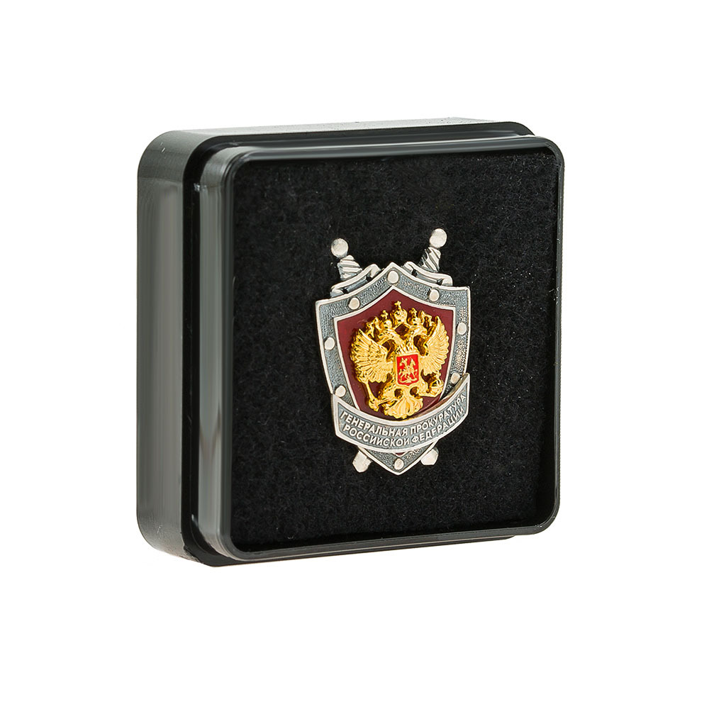 SILVEROFF Брошь Серебряный значок Генеральная Прокуратура РФ, эмаль, позолота, чернение