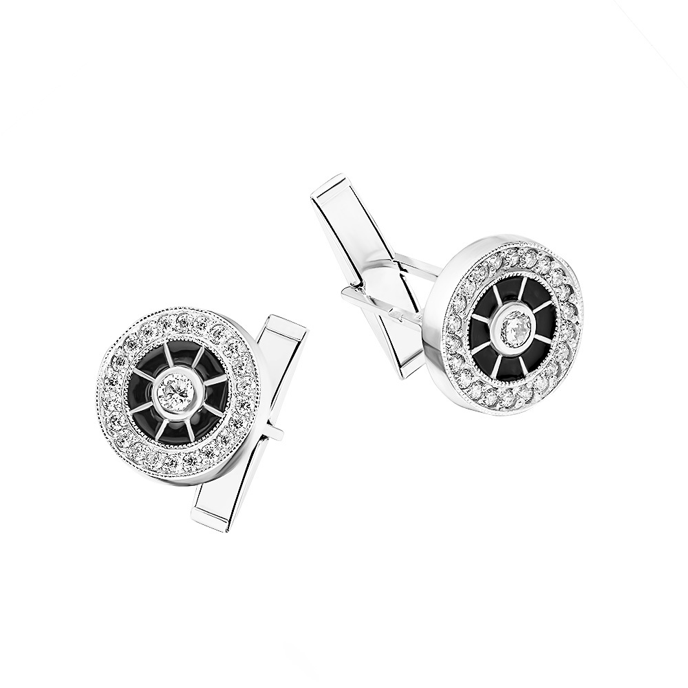 SILVEROFF Запонки Серебряные мужские "Колеса", родий, фианиты, черная эмаль