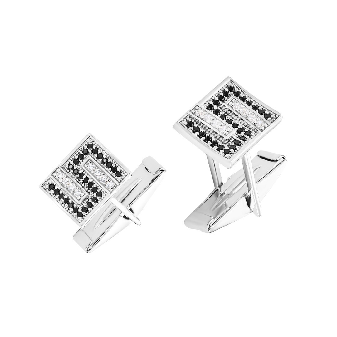 SILVEROFF Запонки Серебряные "25" с черной шпинелью и белыми фианитами , покрытие родием