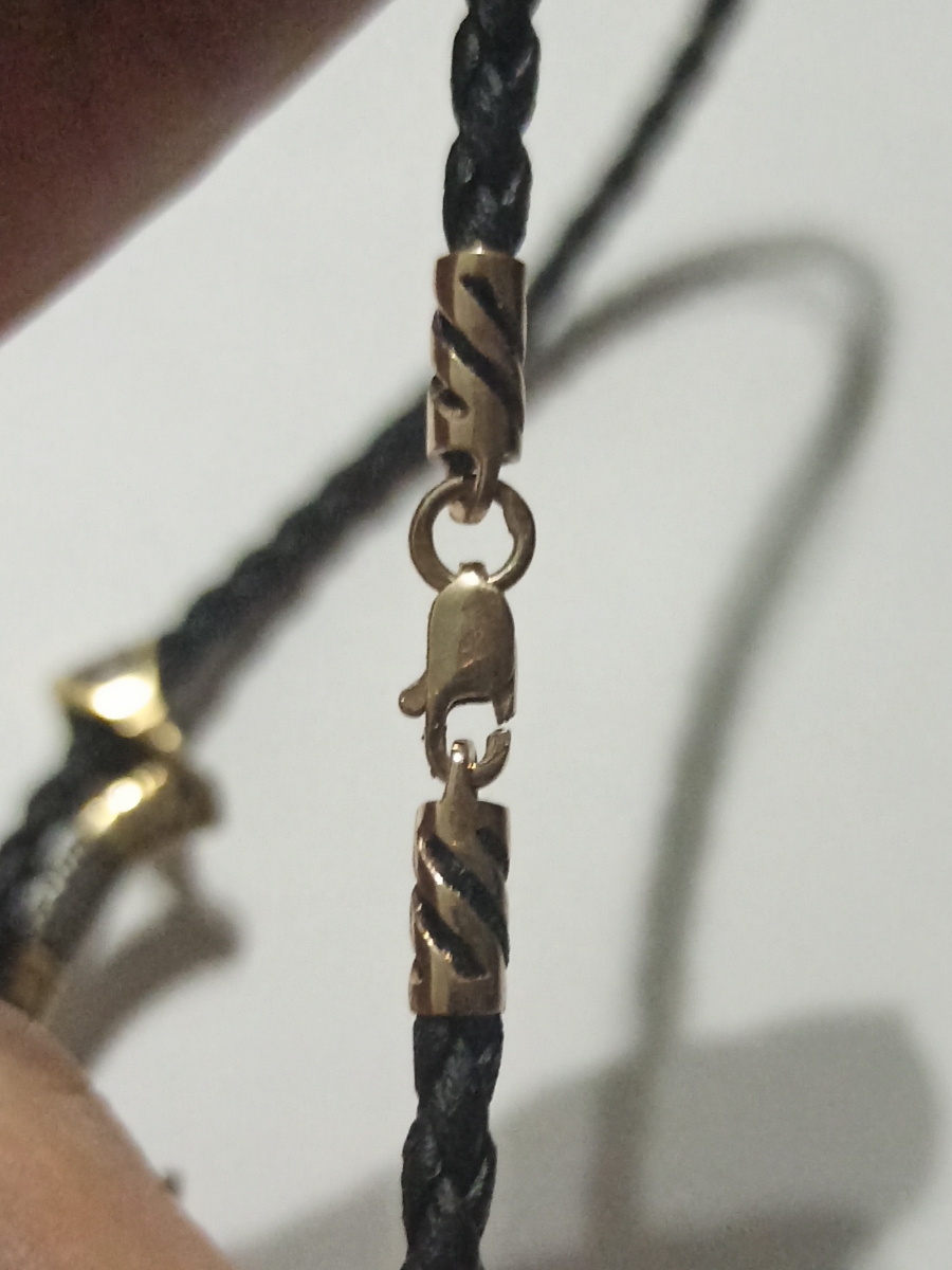 SILVEROFF Шнурок Ювелирный Гайтан черный, Плетеная Экокожа 3,5 мм с серебряным замком, Позолота