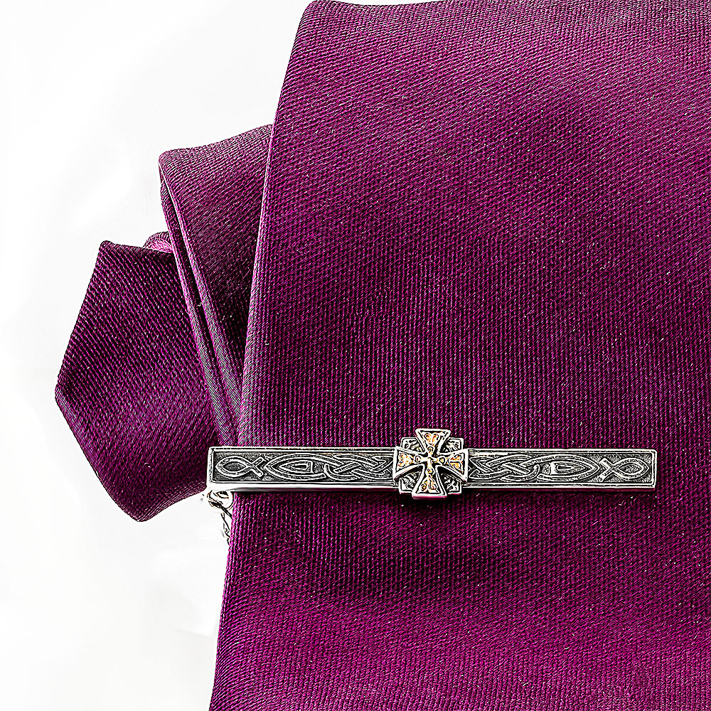 SILVEROFF Зажим для галстука Серебряный с золотой накладкой, с крестом "Апостол"