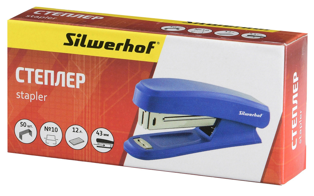 Степлер Silwerhof 401072-02 N10 (12листов) синий 50скоб пластик закрытый коробка - 12 шт