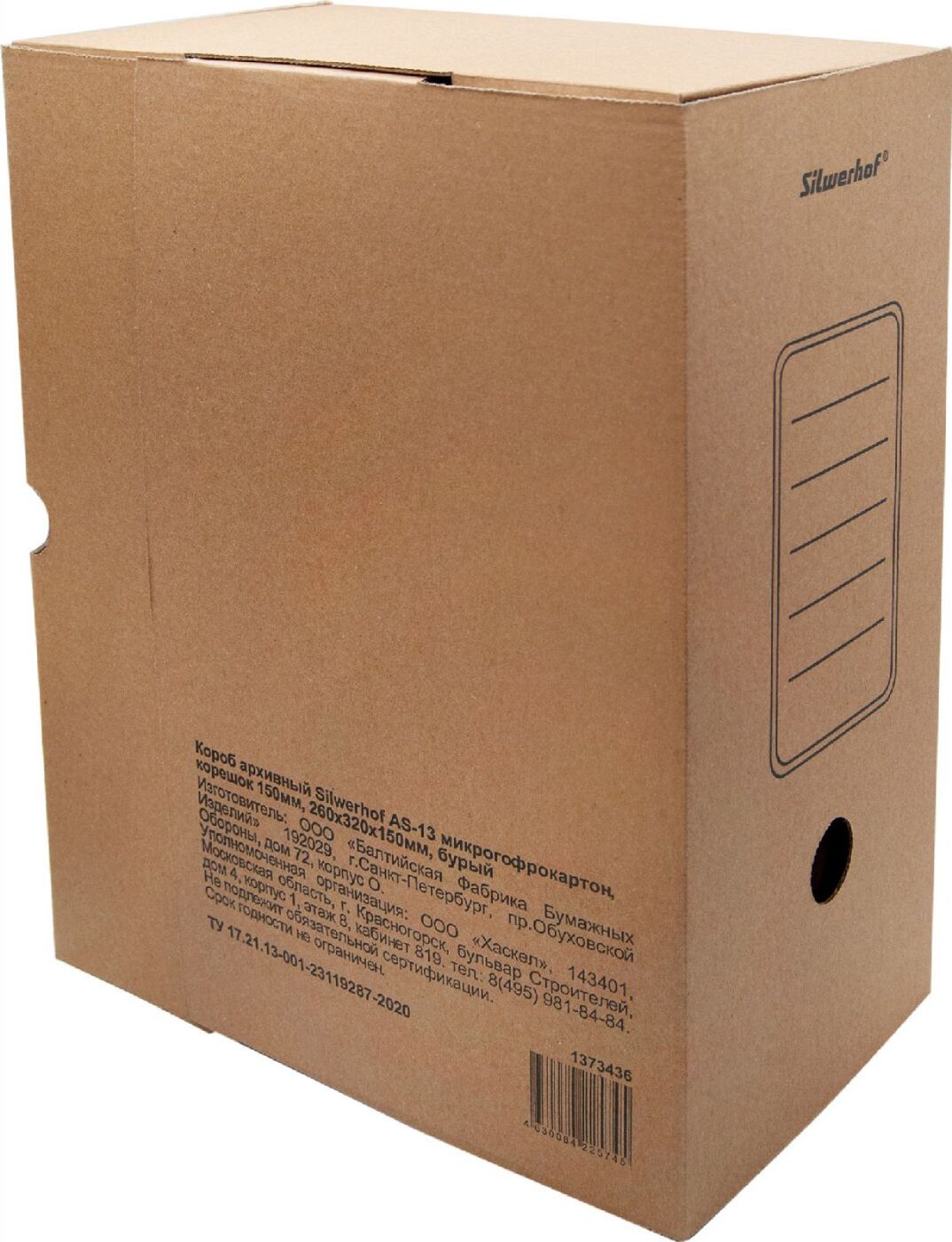 Короб архивный Silwerhof КА-150БУРЫЙ микрогофрокартон корешок 150мм 260x325x150мм бурый - 40 шт