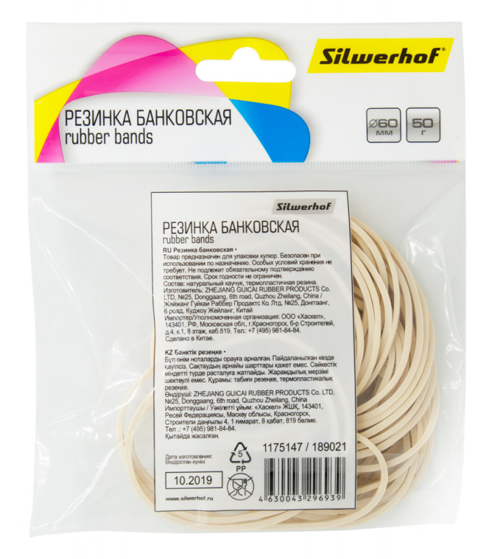 Резинки для купюр Silwerhof 189015 d60мм 2мм 500гр ассорти