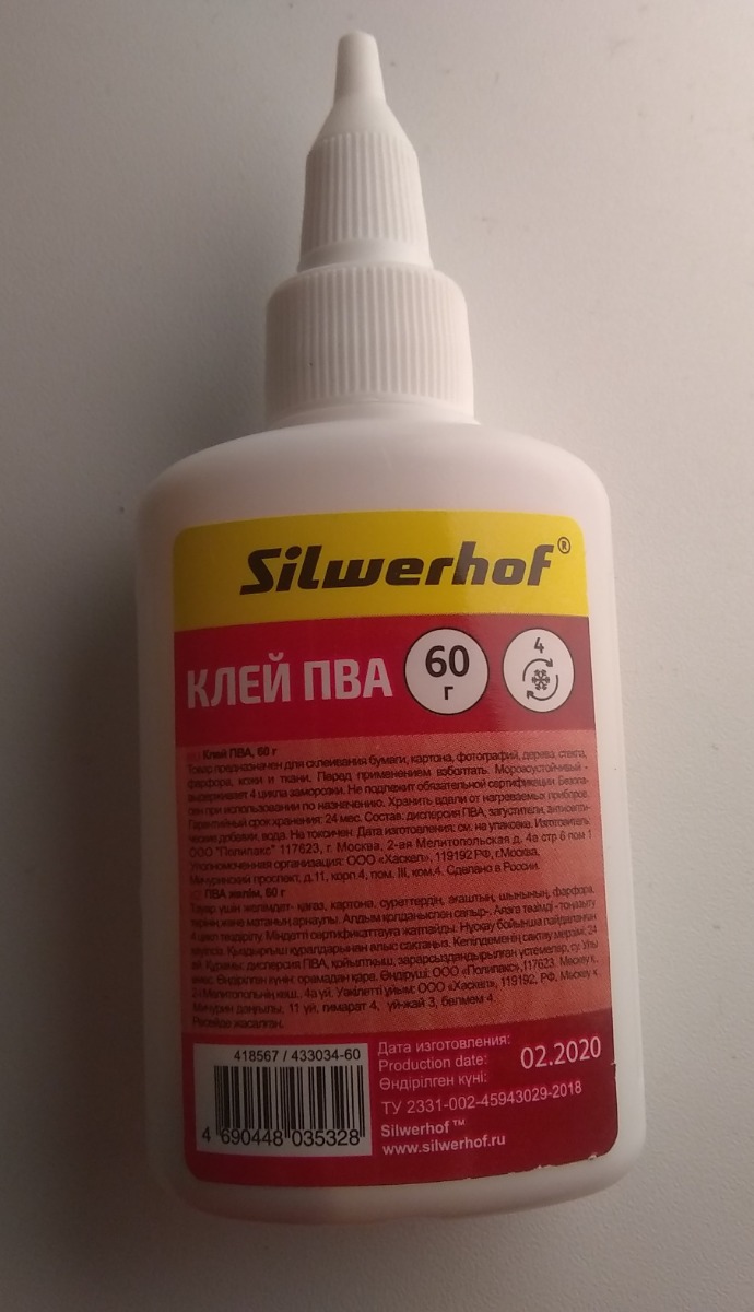Клей ПВА Silwerhof 433034-60 60гр морозоустойчивый