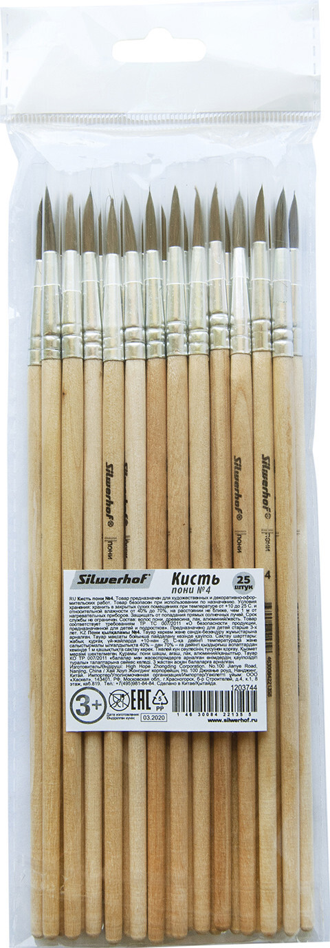 Набор кистей Silwerhof 983062 Народная коллекция пони №4 деревянная ручка - 25 шт