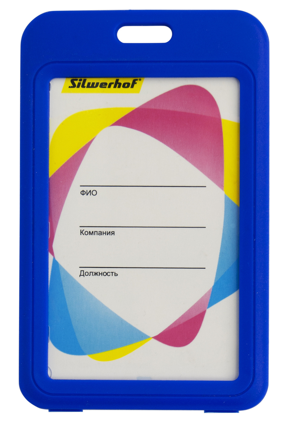 Бейдж Silwerhof 1401462 54х90мм вертикальный, без шнурка, полипропилен, синий.