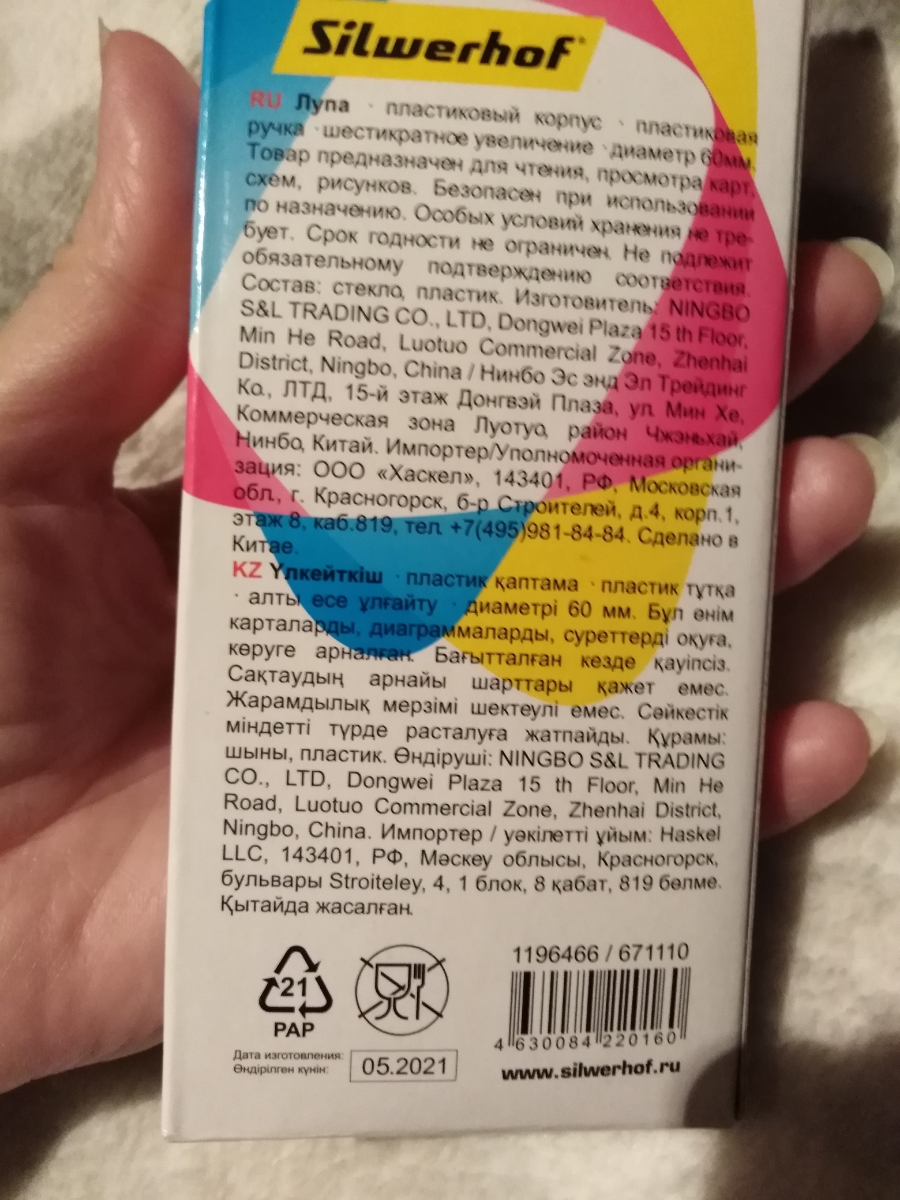Лупа Silwerhof 671110 диаметр 60 мм, x6 черный коробка