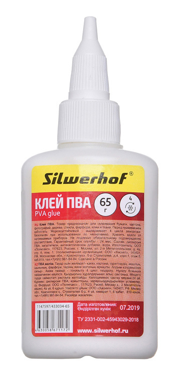 Клей ПВА Silwerhof 433034-65 65гр морозоустойчивый