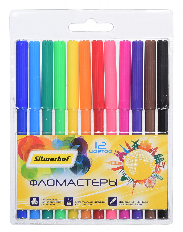 Фломастеры Silwerhof 867222-12 Солнечная коллекция 8мм 129мм круг. Вентилируемый 12цв.